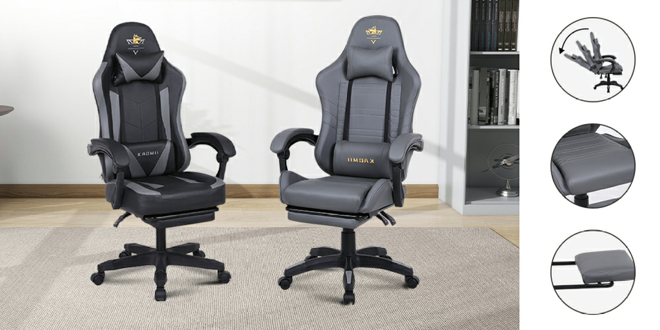ゲーミングチェア ゲーム用チェア ファブリック デスクチェア オフィスチェア パソコンチェア テレワーク椅子 PCチェア オットマン付き リクライニング機能 ハイバック グレー KAGMII