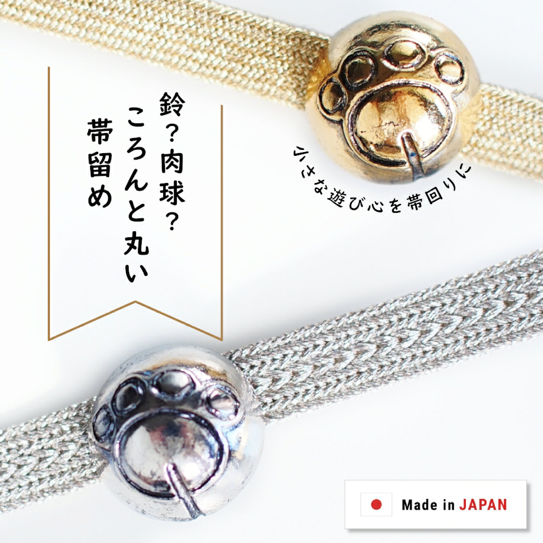 ころんと丸いフォルムが愛らしい鈴?肉球?モチーフの帯留め