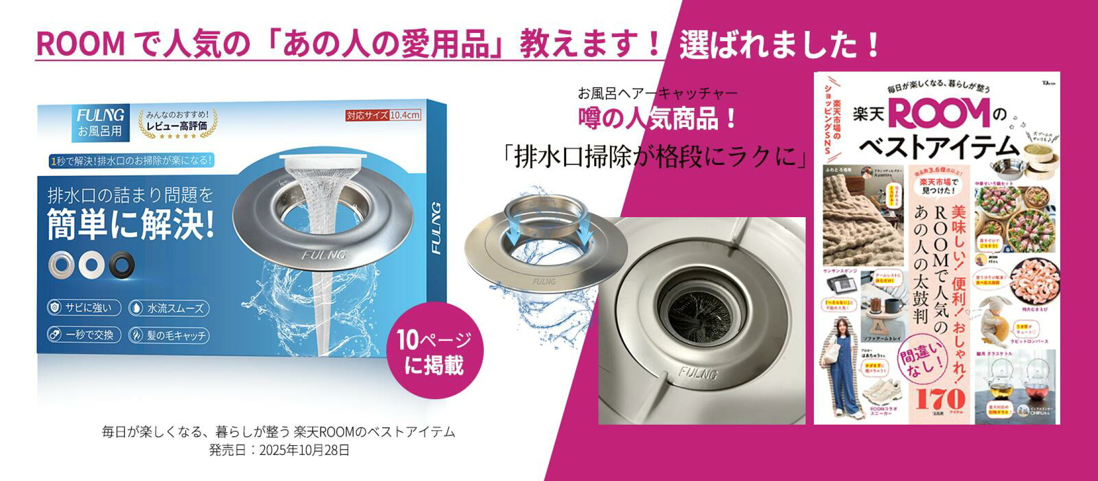マラソン開催中!1/9 20:00~1/16 01:59まで最大5倍ポイント!【FULNG お風呂ヘアキャッチャー】お風呂 排水溝 掃除 ユニットバス 排水口ネット 排水溝ネット はいすいこう ネット ごみ受け 送料無料 極排水 [実用新案出願済み]