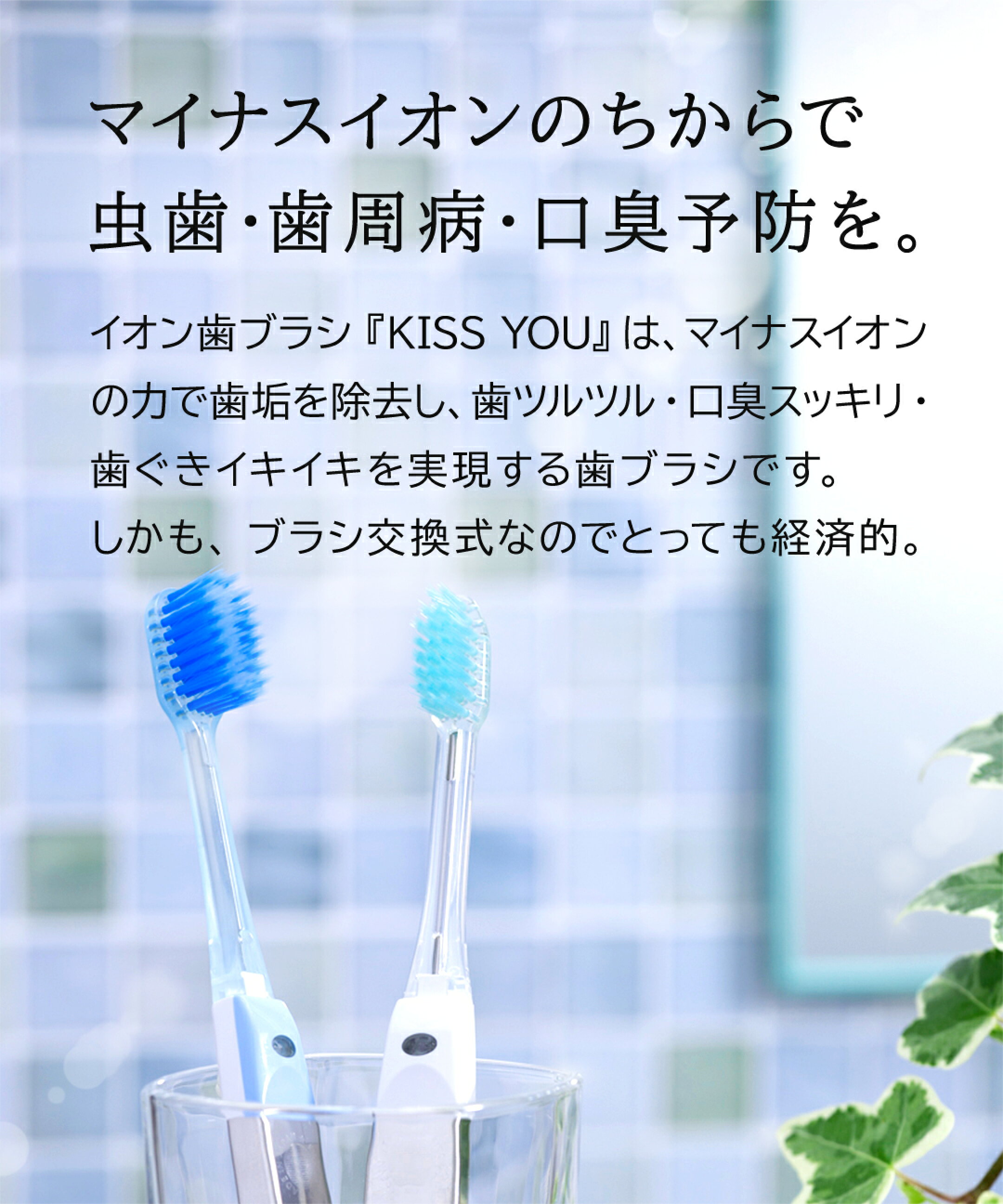 【新商品】イオン歯ブラシ KISS YOU(キスユー)フラットミディアム 替え ふつう 2本入り イオン歯ブラシ 歯科衛生士共同開発 虫歯予防