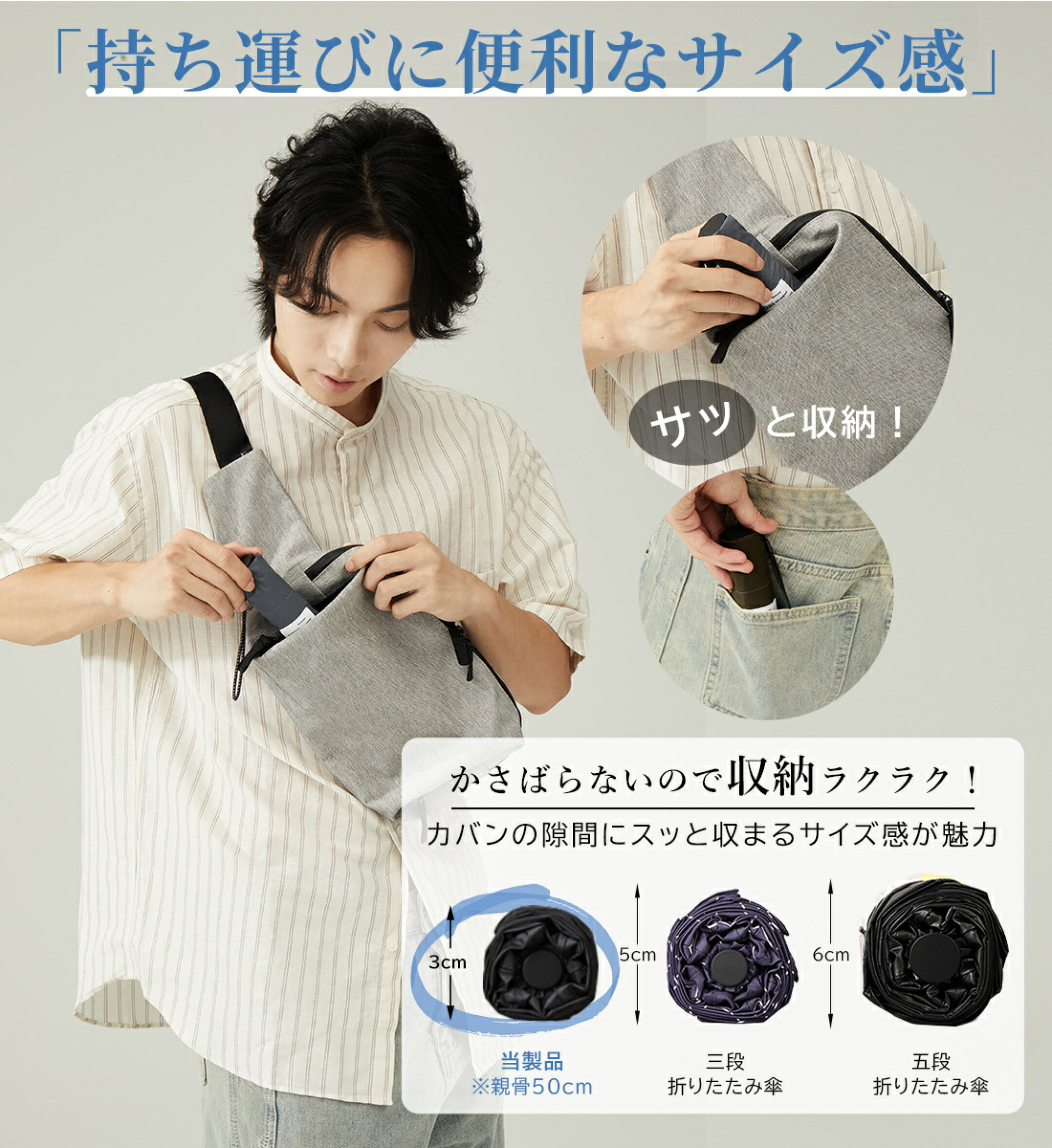 わずか69g~の超軽量!常備傘として365日持ち歩けます! 親骨選は3サイズ50/55/60cm。 軽さ最重視のポキポキタイプro便利さ最重視のラクラクタイプ。 バリエーションが豊富なので、あなた好みがきっと見つかるはず! ▼対象商品はコチラ▼
