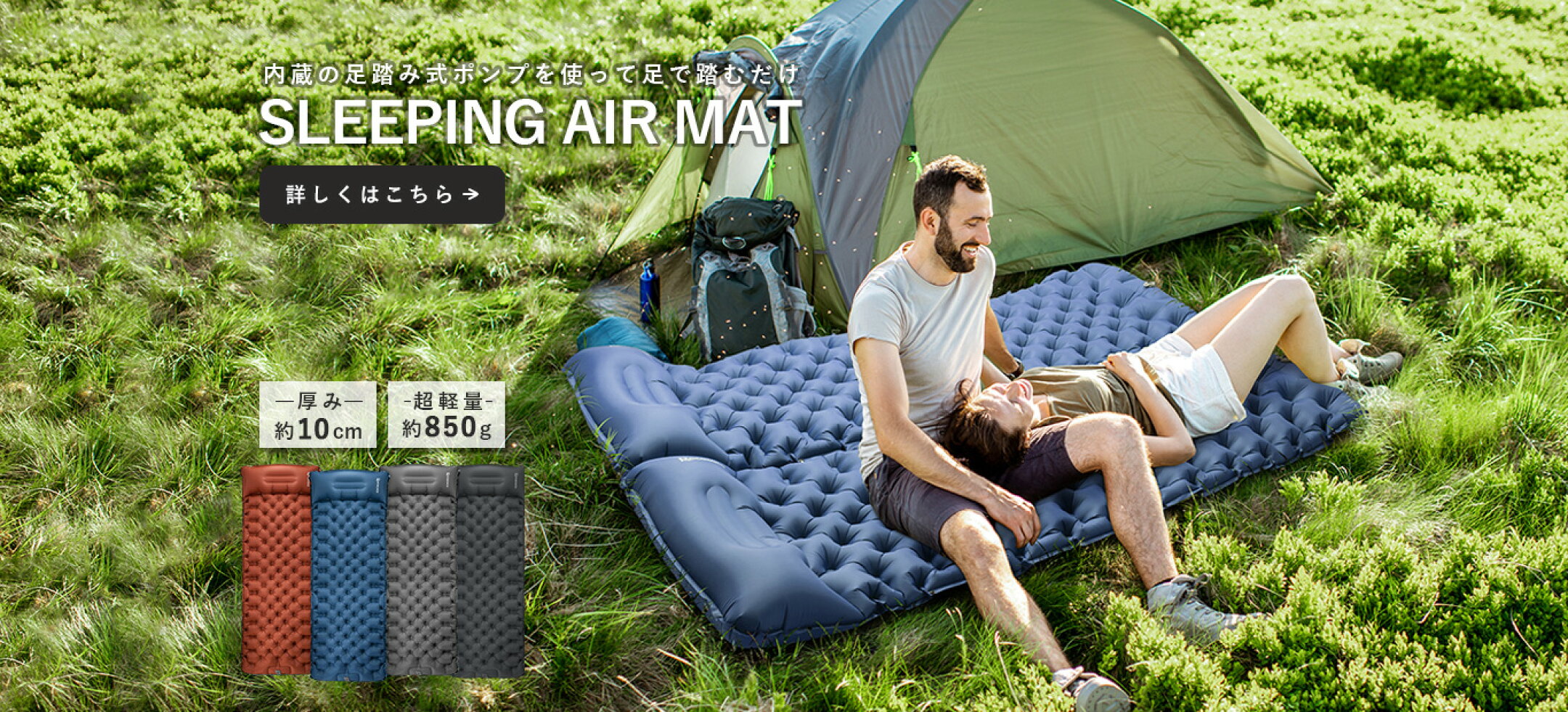 【365日保証】エアーマット 10cm厚さ 4カラー エアマット キャンプマット 足踏み式 厚手幅広 キャンプ マット 車中泊 軽量 枕付き 無限連結可能 コンパクト 防水 防災 災害用 キャンプ用品 収納袋付 ダブル シングル
