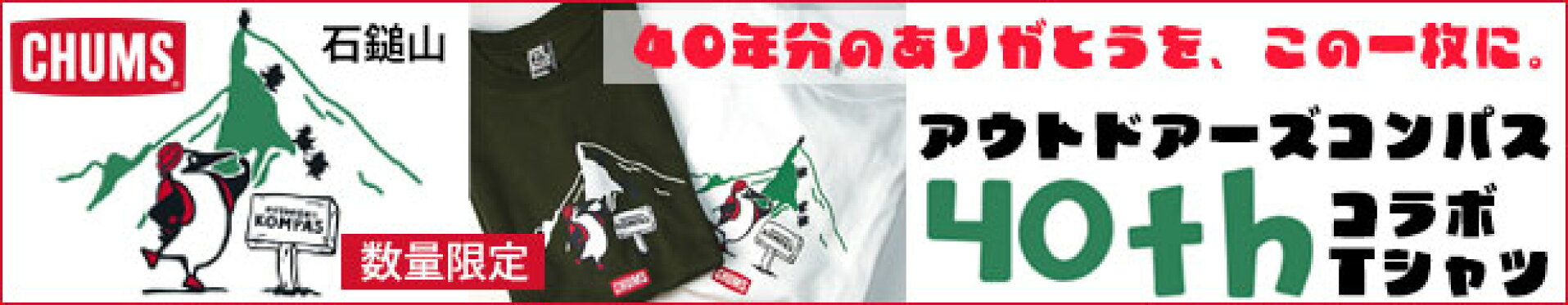 CHUMS チャムス アウトドアーズコンパスコラボTシャツ 40周年記念 「石鎚山」CH11-2811 レディース/女性用 半袖Tシャツ OUTDOOR'S KOMPAS 40th T-Shirt コットンT 数量限定 ホワイト カーキ 百名山