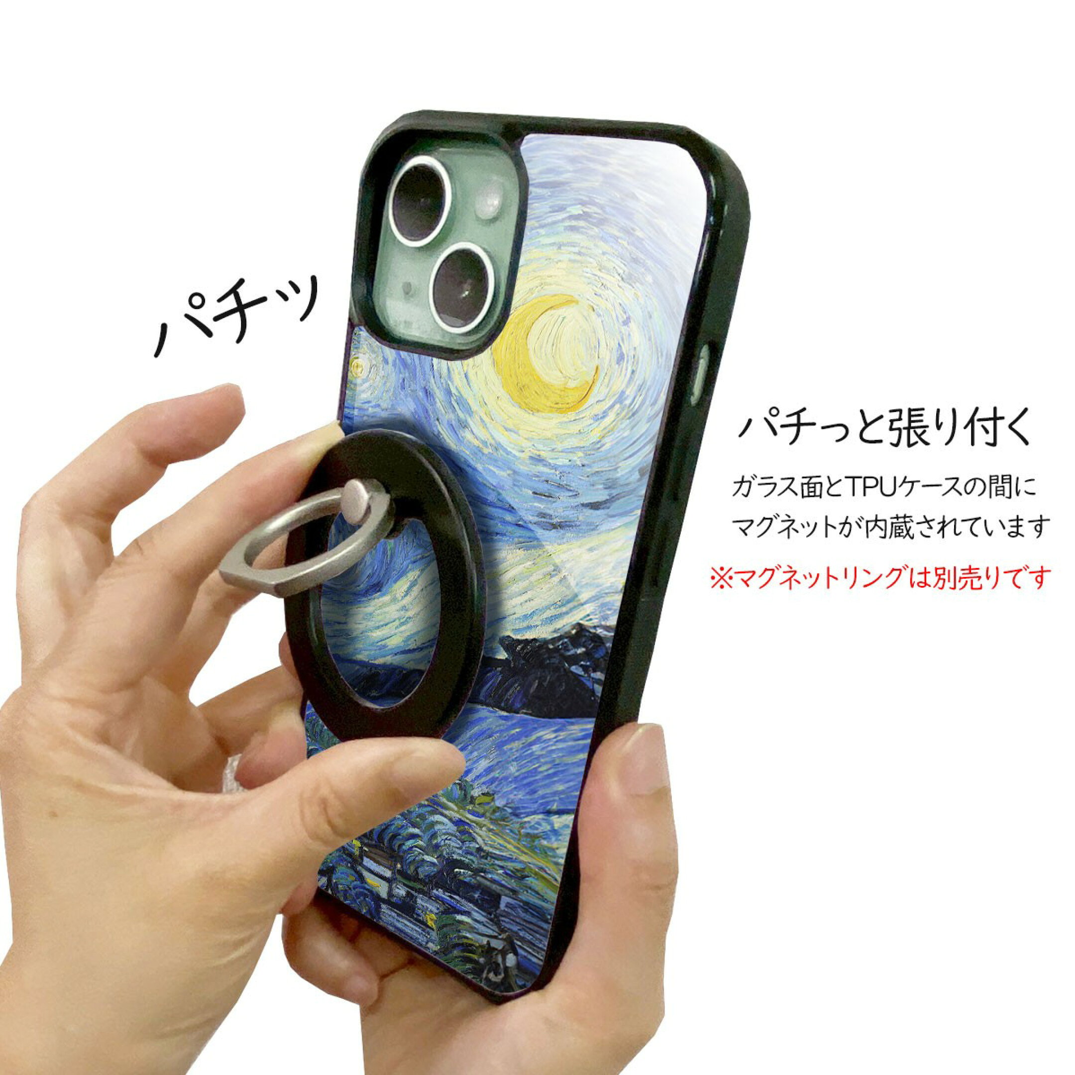 光沢のある美しい表面背面強化ガラスに側面は耐衝撃性TPU素材。iPhone系のみ対応。 マグネット内蔵magsafe対応ハイブリッドケース。