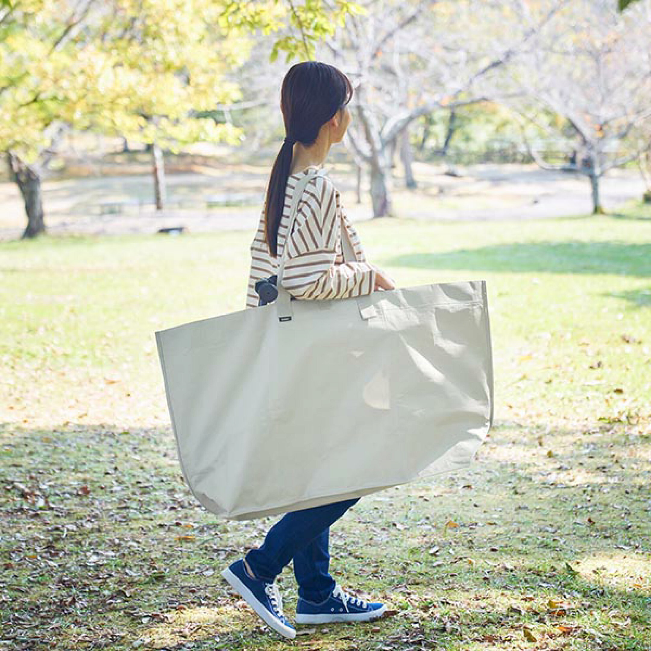 ボール、レジャーシート、折りたたみイスなど、外遊びグッズをざっくり収納。 玄関に置いておけば「さっと持ち出せて、さっと片づけられる」頼れるバッグです。