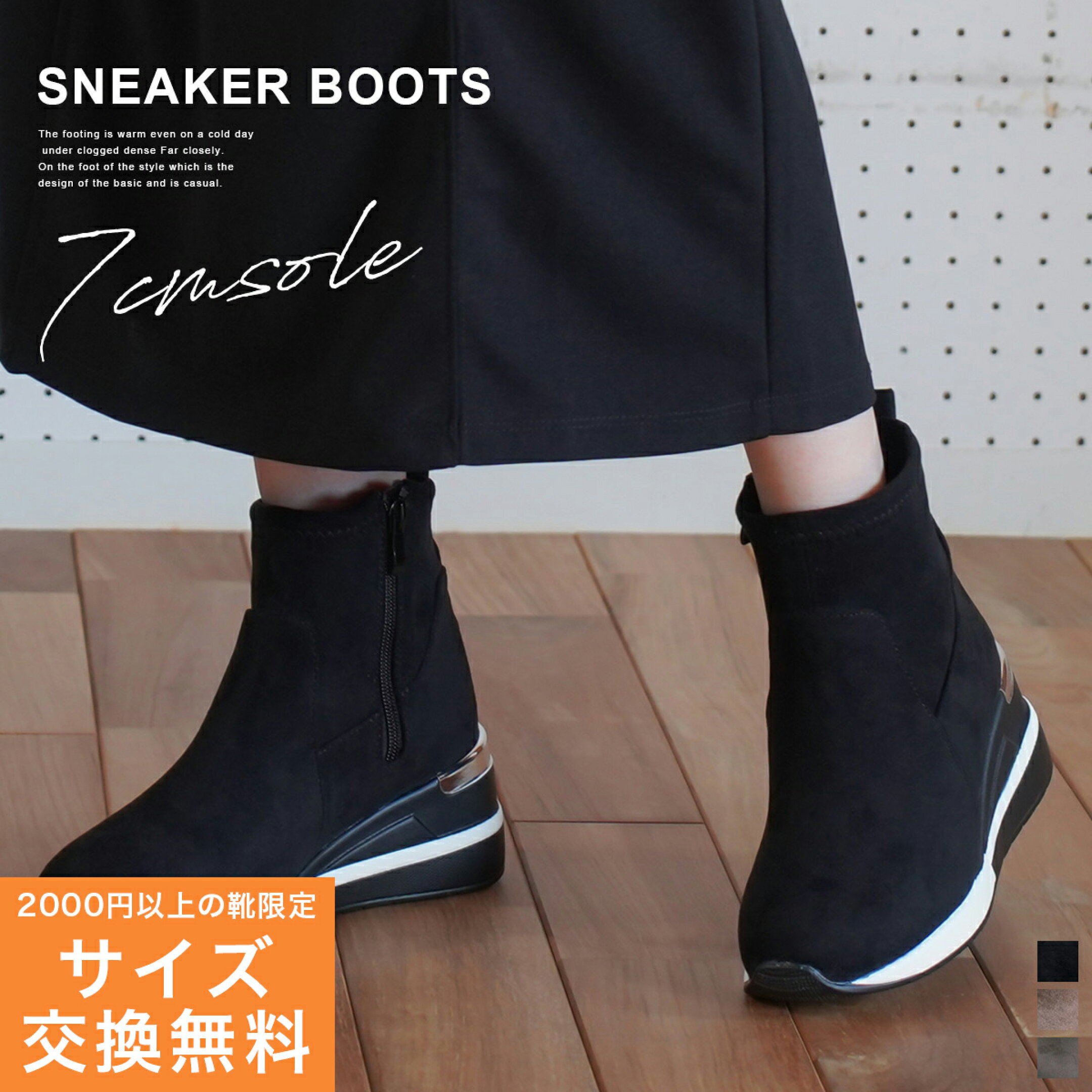 クーポンあり◆大特価SALE★サイズ交換無料★ブーツ ウエッジソール 歩きやすい 厚底 スニーカー ブーツ 7センチヒール 履きやすい レディース 快適 ストレッチ ブラック ブラウン 秋冬 クッション ジッパー ショート 黒 スエード