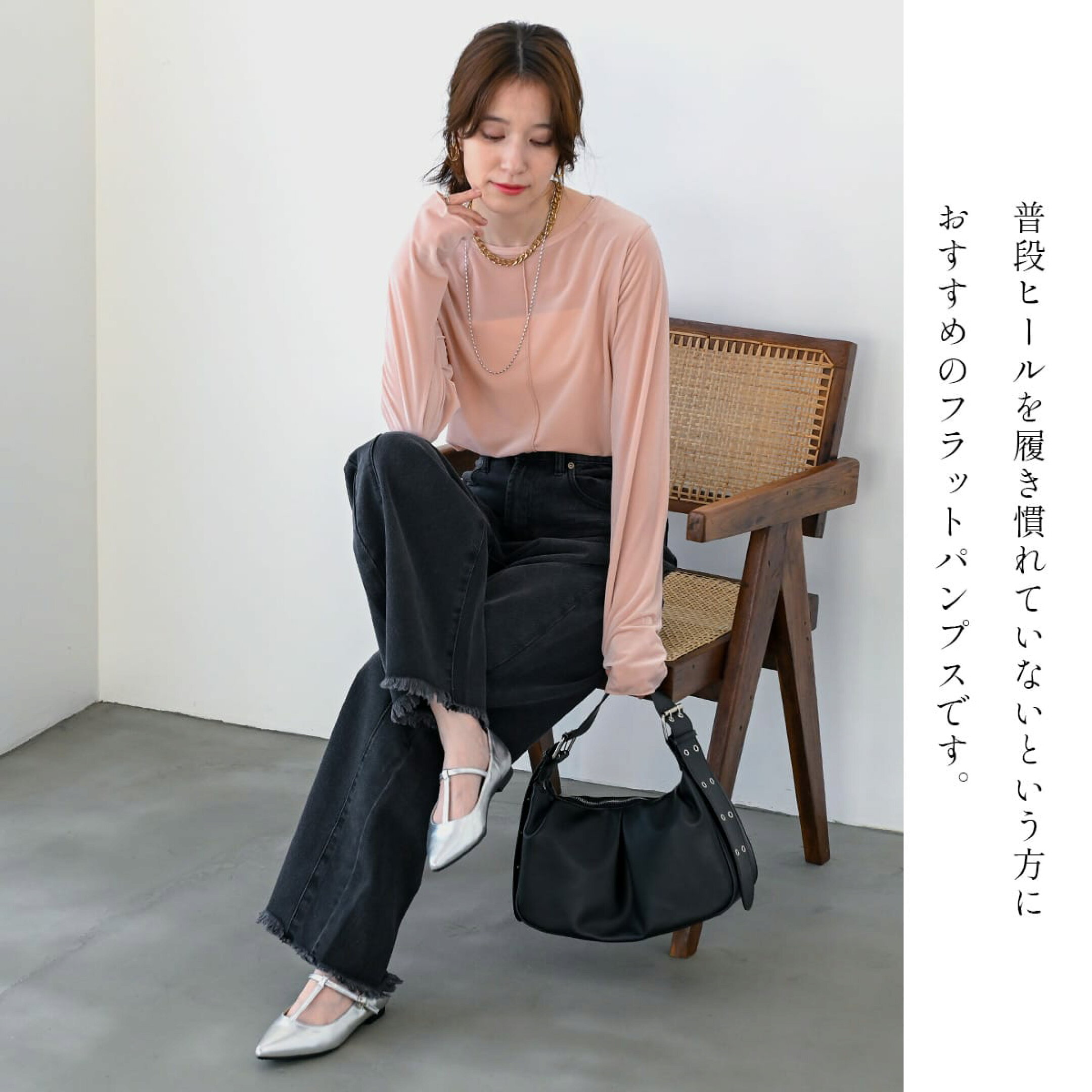 きれいめシルエットで大人っぽく見える上品アイテム。 フラットなので歩きやすく、すっきり美脚を演出! 凹凸のある防滑アウトソールで滑りにくく快適な履き心地に。
