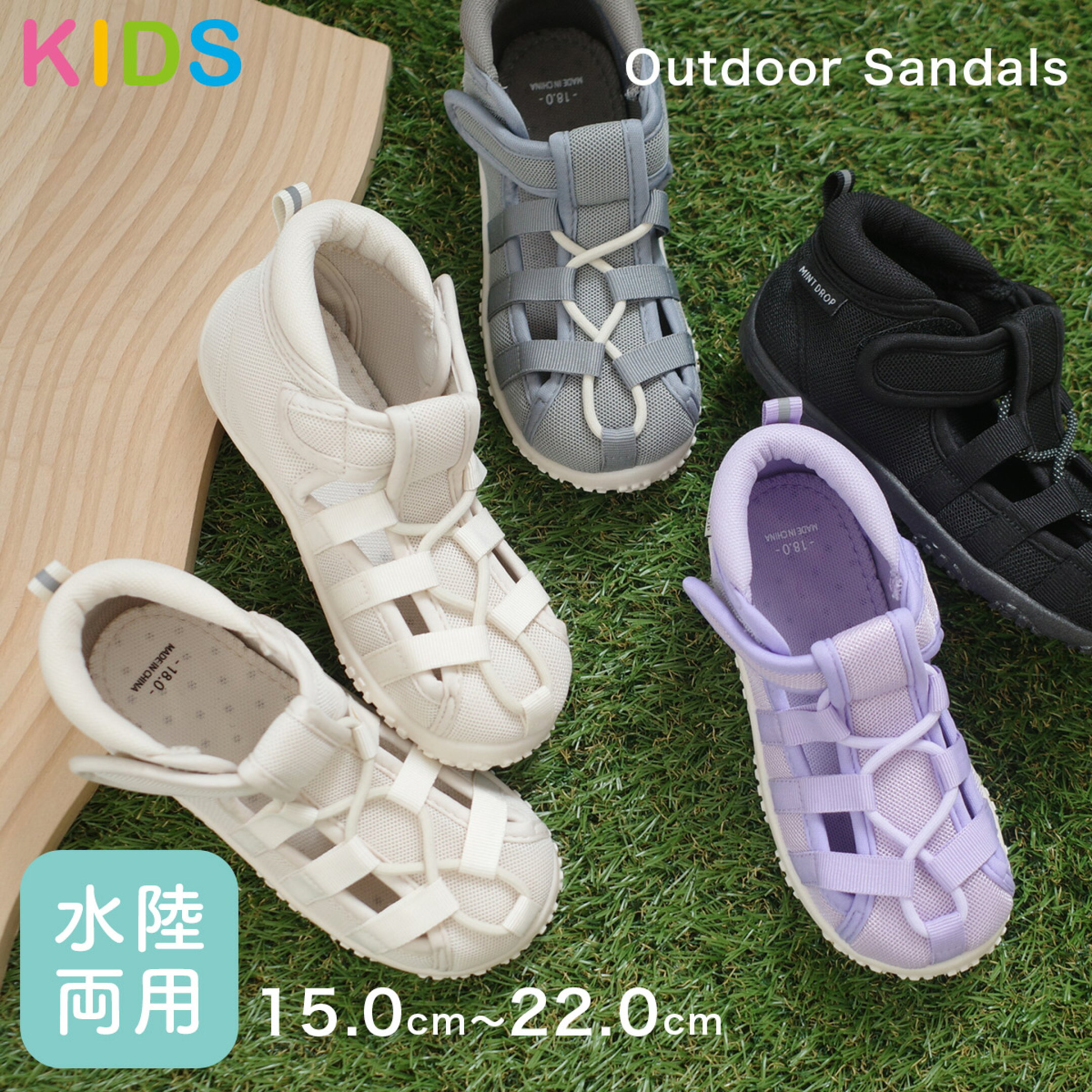 【返品交換不可】【在庫限り★特別価格】軽量 軽い 水遊び PVC グルカサンダル 1.5センチヒール 柔らか キッズ ジュニア ベビー マジックテープ 履きやすい ホワイト カーキ ブラウン 14.5 18.0 レジャー リゾート 海 ビーチ 保育園 幼稚園 mintdrop ミントドロップ