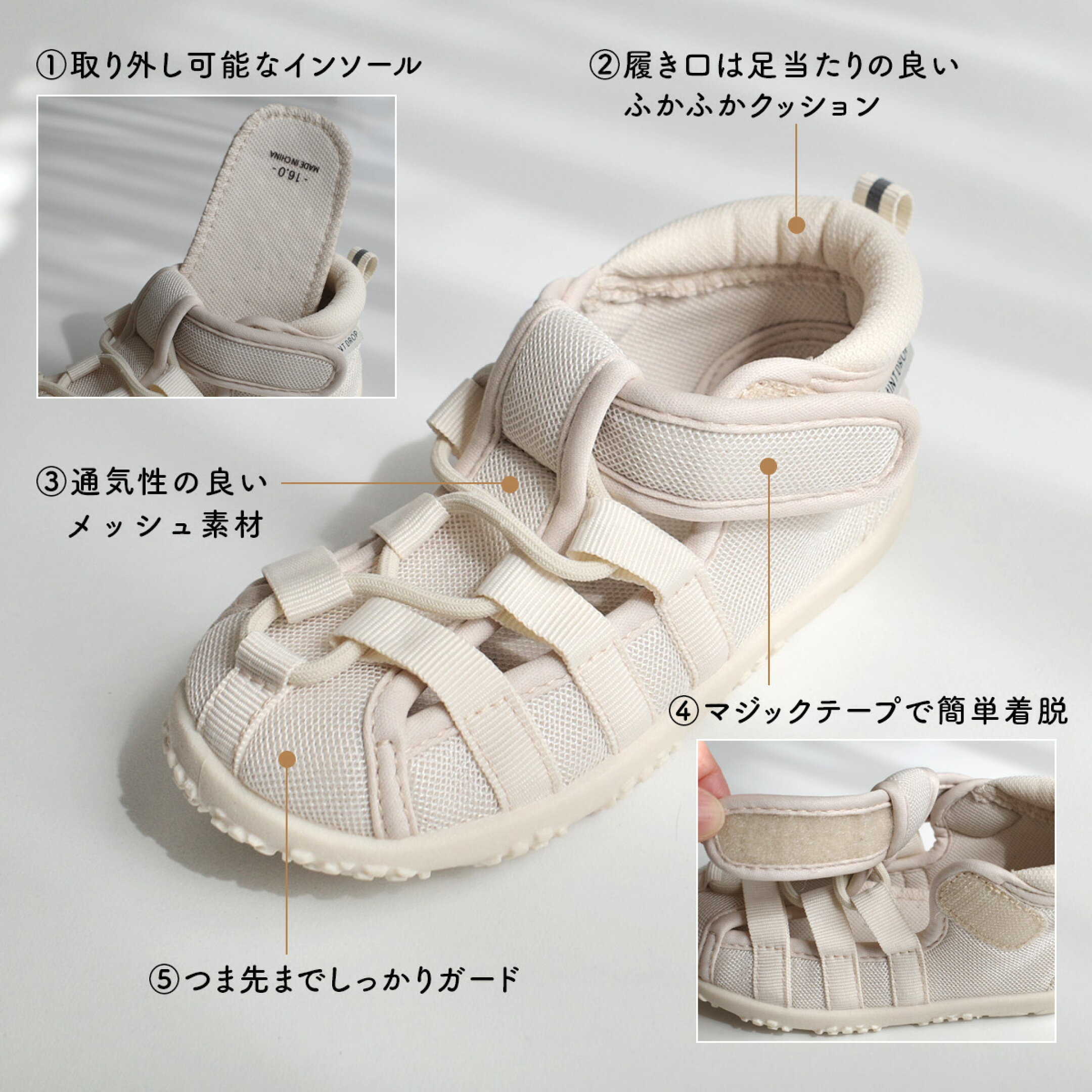小さなお子様でも脱ぎ履きしやすい仕様です。 アウトドアだけでなく、普段履きにも◎
