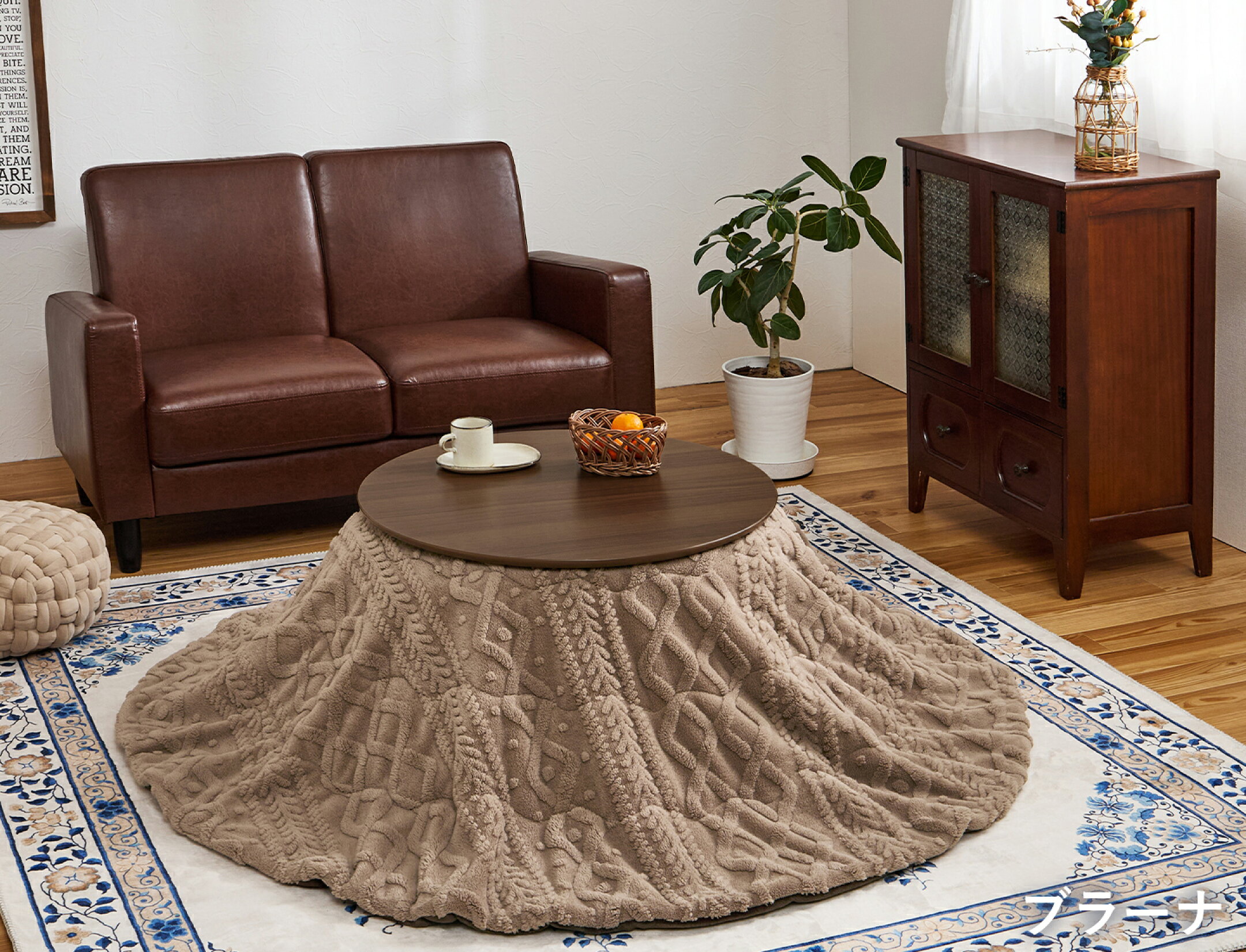 リバーシブルこたつ 円形80/楕円形105cm 【アベル/ルナ・モクモク・メレンゲ】(こたつ おしゃれ セット 円形 小さい こたつテーブル 布団 楕円 布団セット 丸 ローテーブル 北欧 カジュアル シンプル 木目調 コタツ コンパクト 丸テーブル)