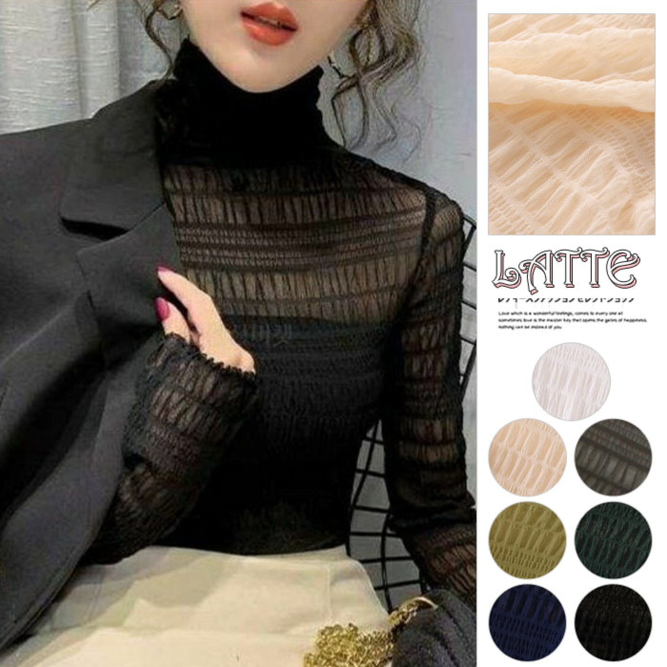 シアー ハイネック トップス レディース トップス カットソー おしゃれ レース お花 インナー 無地 長袖 ストレッチ レイヤード 女性 大人 かわいい きれいめ シンプル 送料無料