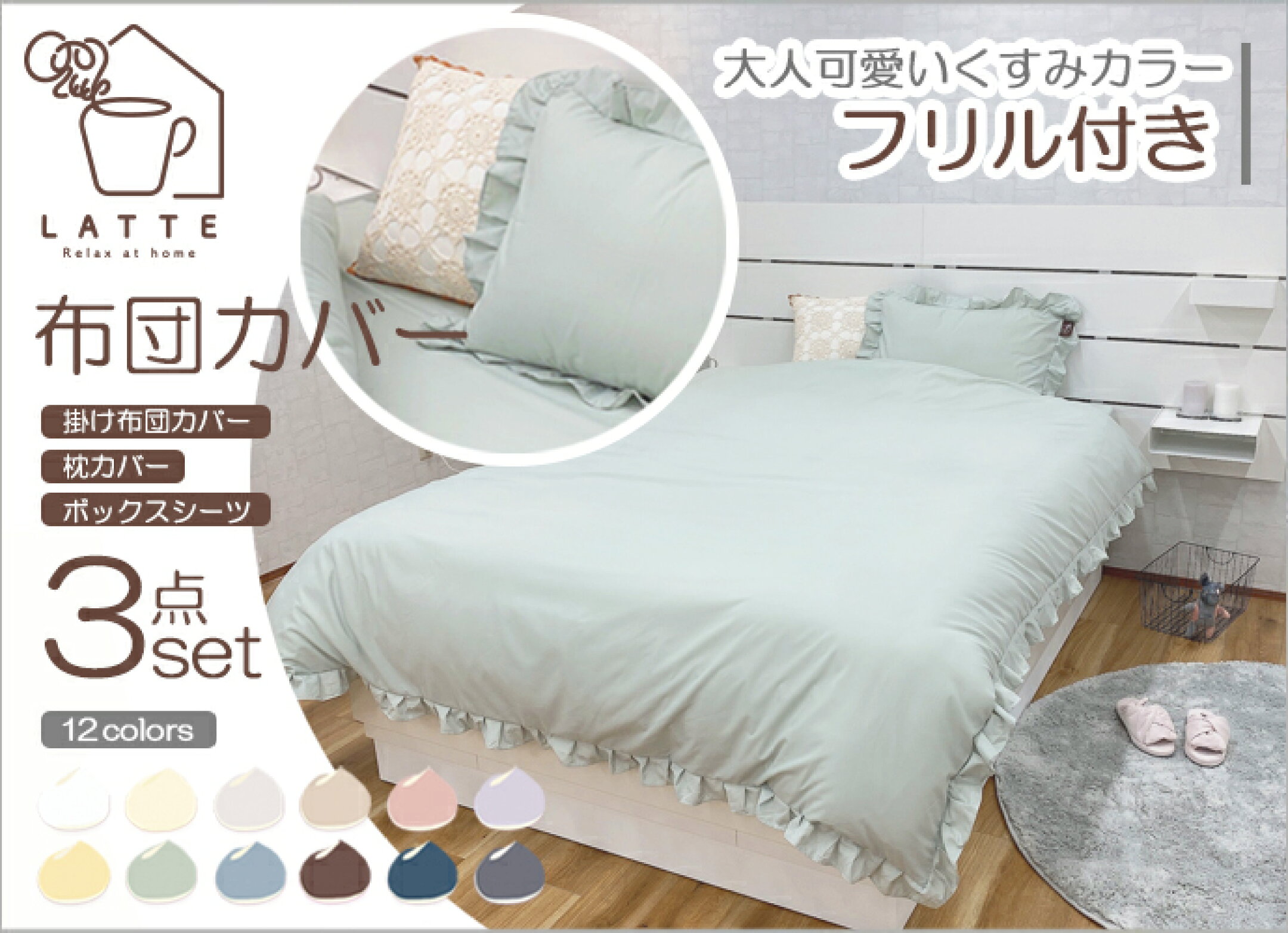 布団カバー 3点セット シングル フリル 選べる おしゃれ 可愛い 掛け布団カバー ボックスシーツ 枕カバー プリーツ フリル くしゅくしゅ シングル セミダブル ダブル かわいい 洗える オールシーズン 無地 韓国 カバーセット 001