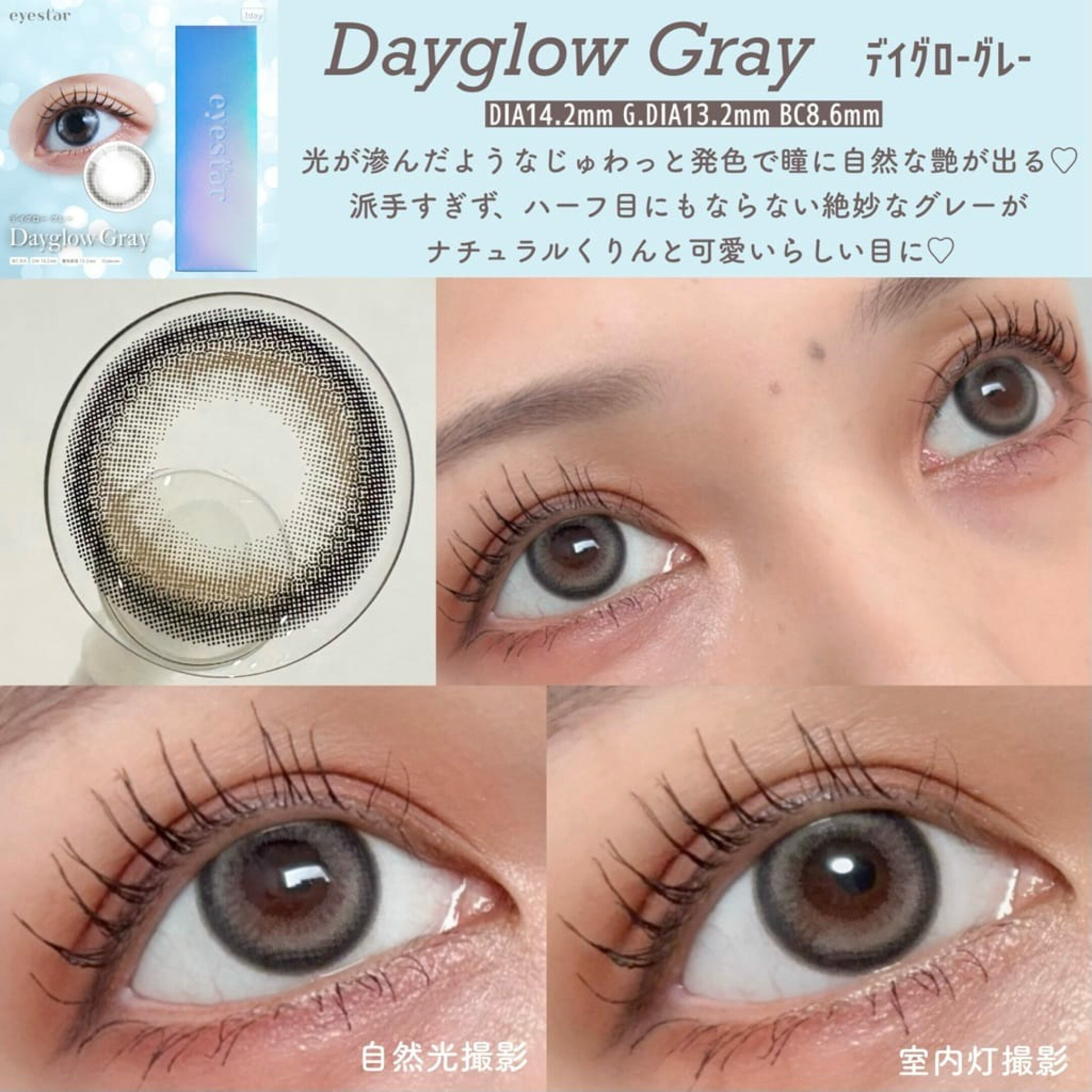 eyestar アイスター カラコン ナヨン ワンデー 度あり 水光カラコン グレー すいこうカラコン 韓国 TWICE NAYEON 水光レンズ ナチュラル フチあり 細フチ 透明感 UVカット 高含水 1day 10枚入り