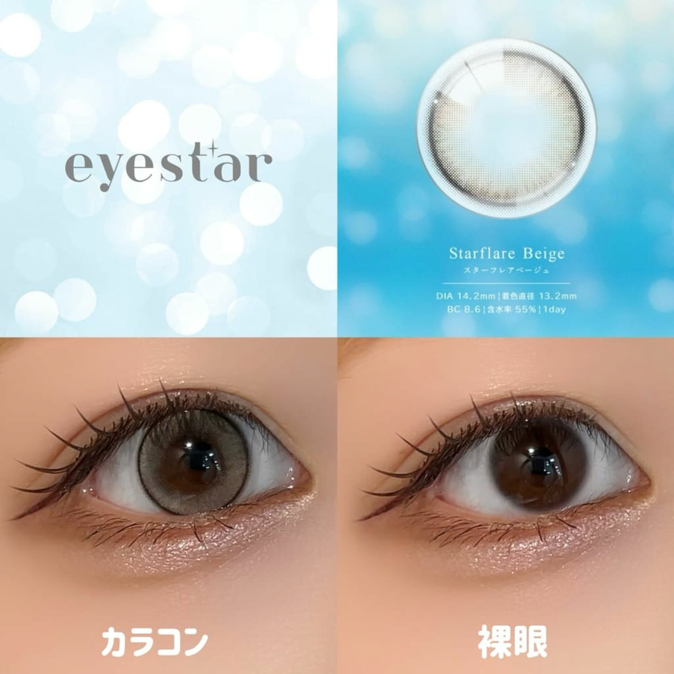――――――――――――― ■レンズ特徴 ――――――――――――― 降り注ぐ星屑のようなハイライトデザインがドラマティックな輝きを与える💫 繊細に重なり合うハイライトが主役級の輝きを✨ ✓着色直径 13.2mm ✓おすすめポイント ・可愛く自然に馴染む透明感ベージュ💫 ・ほんのり白っぽなミルキーカラー🥛 ・色素薄めで儚げな目元に✨ 💭スタッフコメント 着けた瞬間のちゅるんと感に驚くうるみベージュ.。o○ 光を反射してうるキラな瞳になれちゃいます! デートの時に着けたら褒められることまちがいなしです💡
