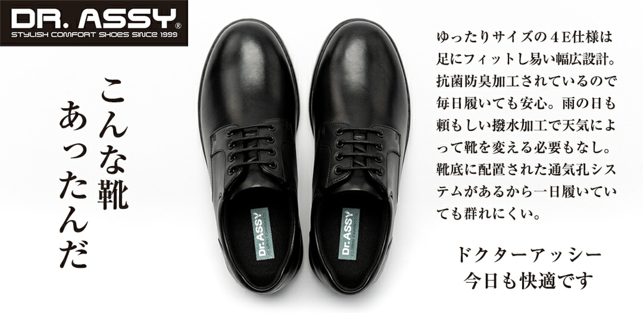 Dr.ASSY [DR6048] ドクターアッシー ブラック メンズ ビジネスシューズ 4E 幅広 歩きやすい 履きやすい 疲れにくい お出かけ 透湿 撥水 通気性 牛革 紳士靴 カジュアル フォーマル シンプル