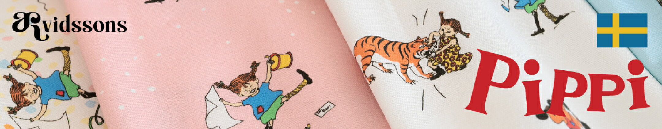 長くつ下のピッピ 北欧生地 生地幅150cm 綿100% Pippi Pa Cirkus ピッピ サーカスに行く ホワイト ARVIDSSONS TEXTIL アルビッドソンズ テキスタイル [10cm単位はかり売り/お試しハーフカットからお選びください]