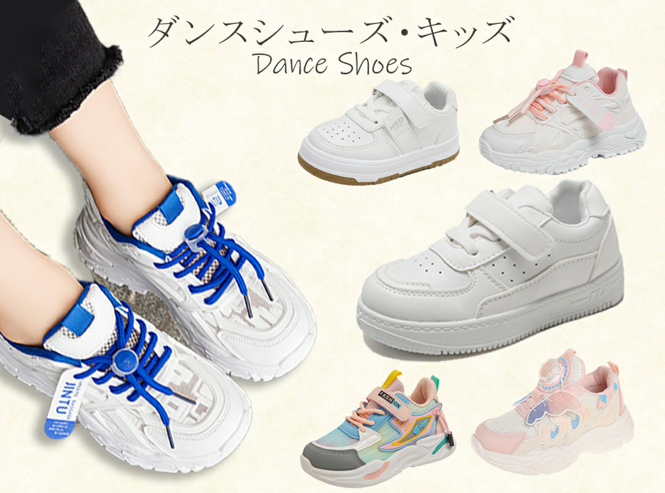 【一部即納】ダンスシューズ スポーツ 白靴 白 スニーカー 真っ白 キッズ カジュアル シューズ 子供 練習着 無地 男女兼用 運動靴 普段着 小学生 通園 通学 軽量 厚底 子供靴 キッズダンス ヒップホップ 通気性 防臭 春夏秋冬 ブラック ホワイト 黒 マジックテープ 14-22.5cm