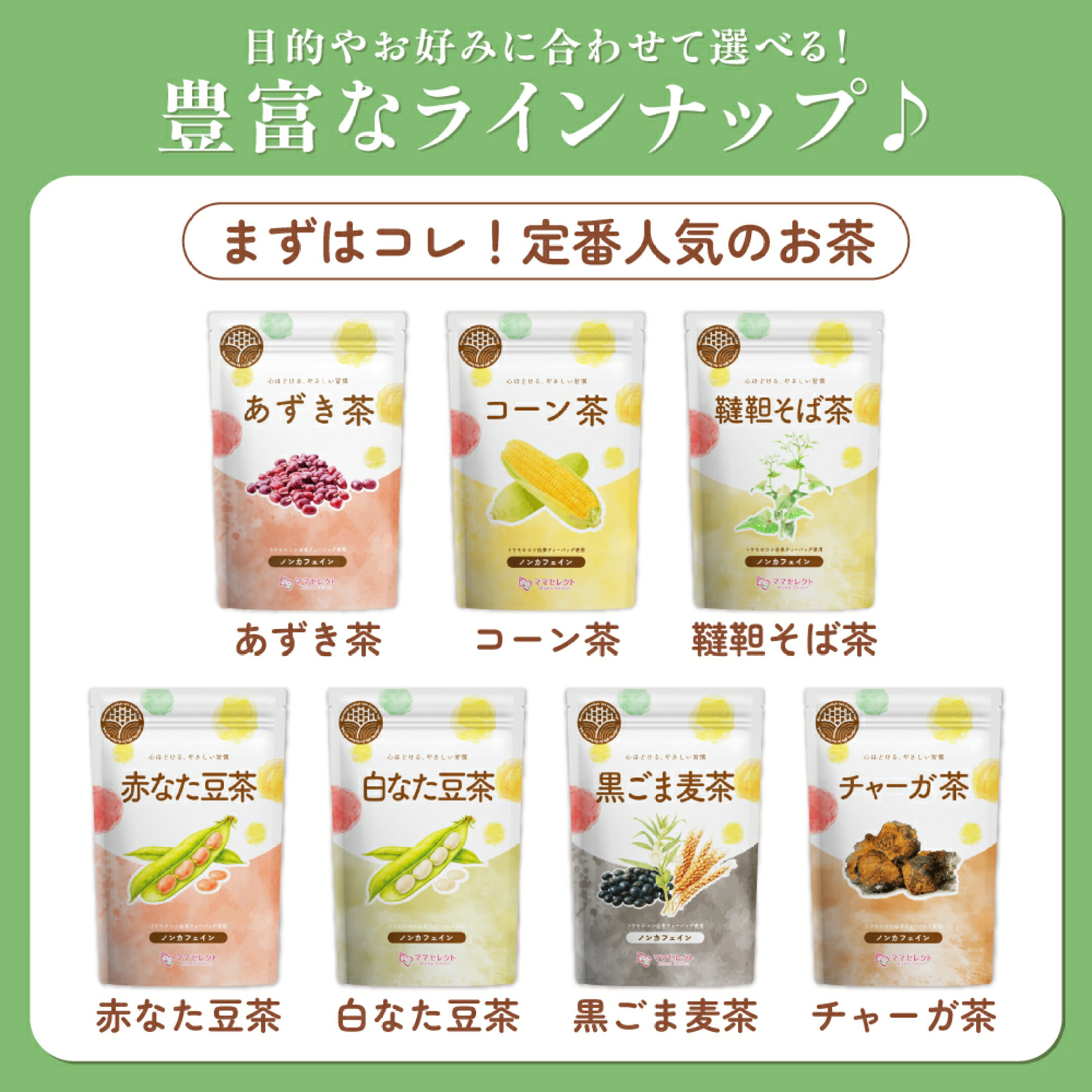 全21種類から、お好みの健康茶やハーブティーを2袋選んでお楽しみいただけます。 毎日の食卓に合わせやすい味わいから、くつろぎ時間にぴったりの香りまで、ご家族みんなで気軽に楽しめるラインナップです。