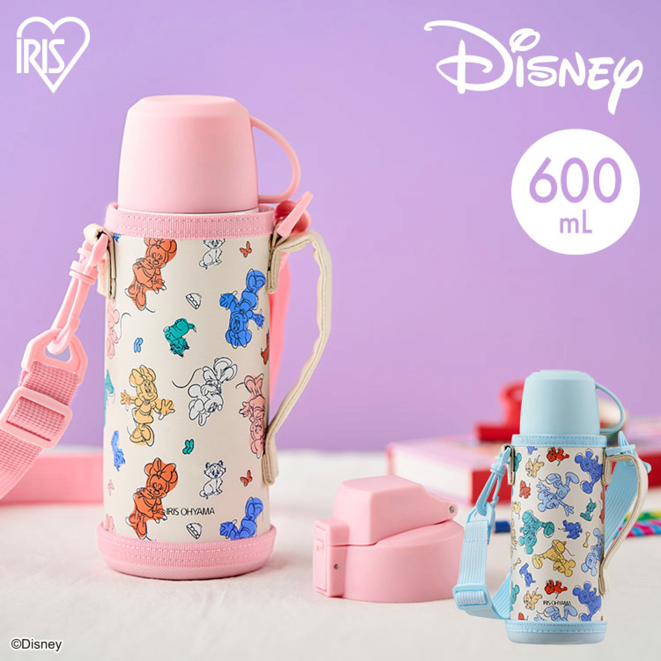 水筒 600ml 1L 保冷 ステンレスボトル 真空断熱 直飲 ワンタッチ カバー付 子供 小学生 幼稚園 保育園 運動 キッズ ディズニー アナ雪 トイストーリー ミッキーマウス スポーツドリンク対応 ダイレクト NDDB-600 NDDB-1000 DBR-600 アイリスオーヤマ