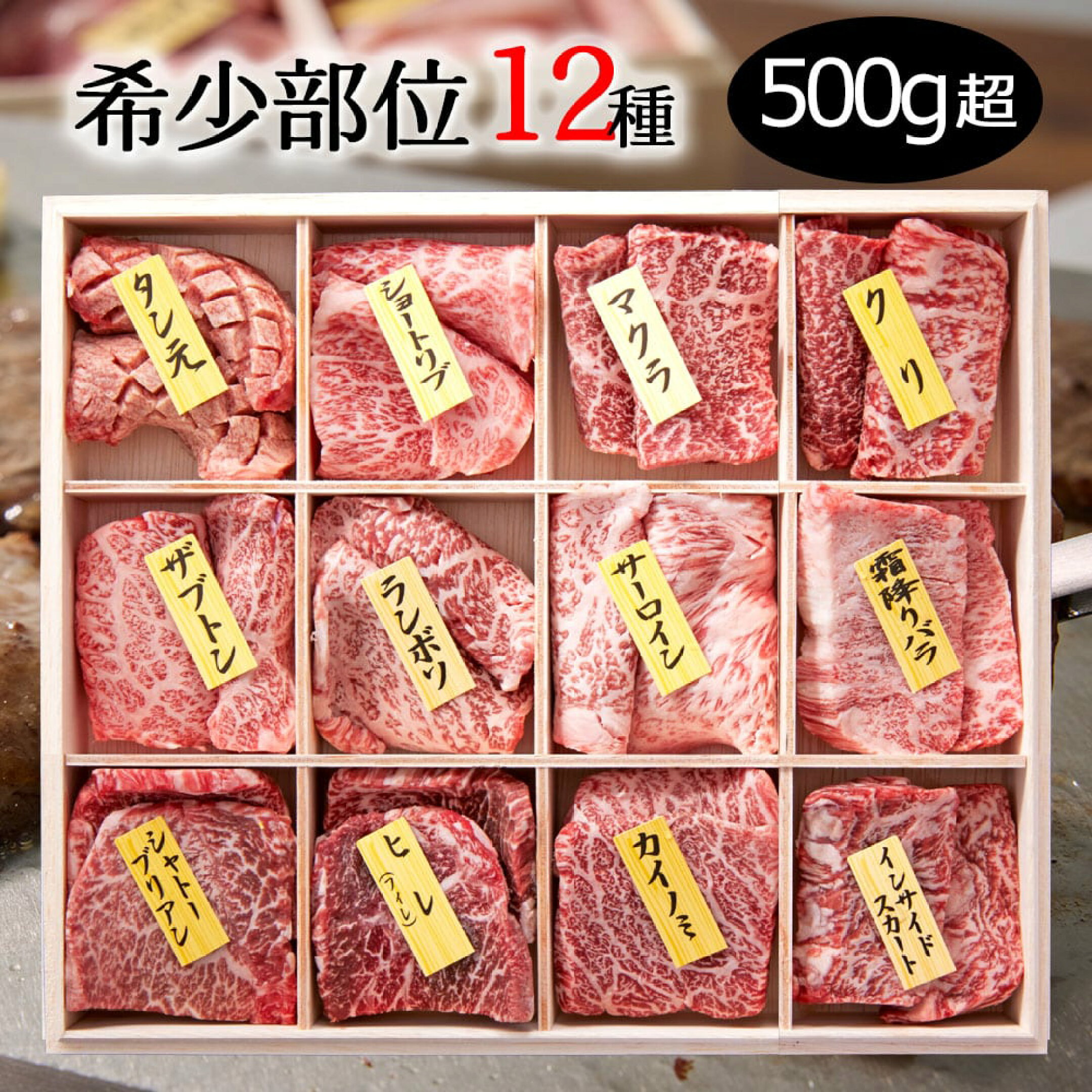 送料無料 匠の目利きで選び抜いた国産黒毛和牛を秘伝のカットでお届け 和牛マイスター厳選の希少部位12種を食べ比べ 手軽に焼くだけで絶品の味わい ギフトでも高評価、おすすめ【国産黒毛和牛 希少部位 12種 シャトーブリアン入り 500g超 高級ギフト 御祝 内祝 御礼 お中元 御中元 暑中見舞い 木箱 数量限定 受注生産】ヒレ フィレ タン タン元 ザブトン ロース サーロイン カイノミ 牛肉 A4 A5 焼肉 霜降り 赤身 食べ比べ 肉
