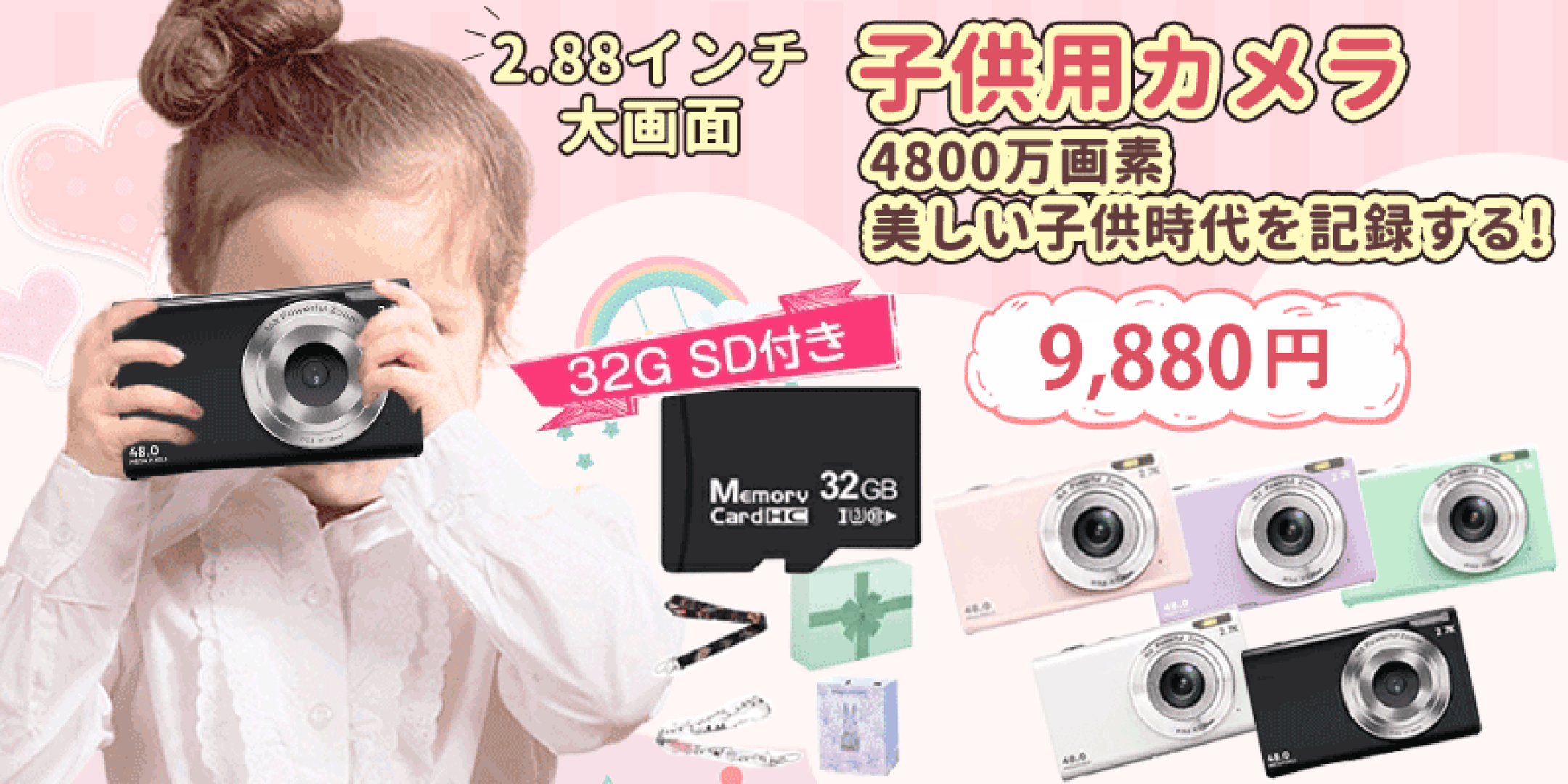 \21%OFFクーポン配布/ 【即納】 【1年保証】 子供用カメラ デジタルカメラ4800万画素 デジタルカメラ 4k 2.7k録画 32GBカード付き 子ども キッズ カメラデジカメ デジタルカメラ コンパクトデジタルカメラ トイカメラ ビデオ カメラ6歳 女の子 プレゼント 小学生