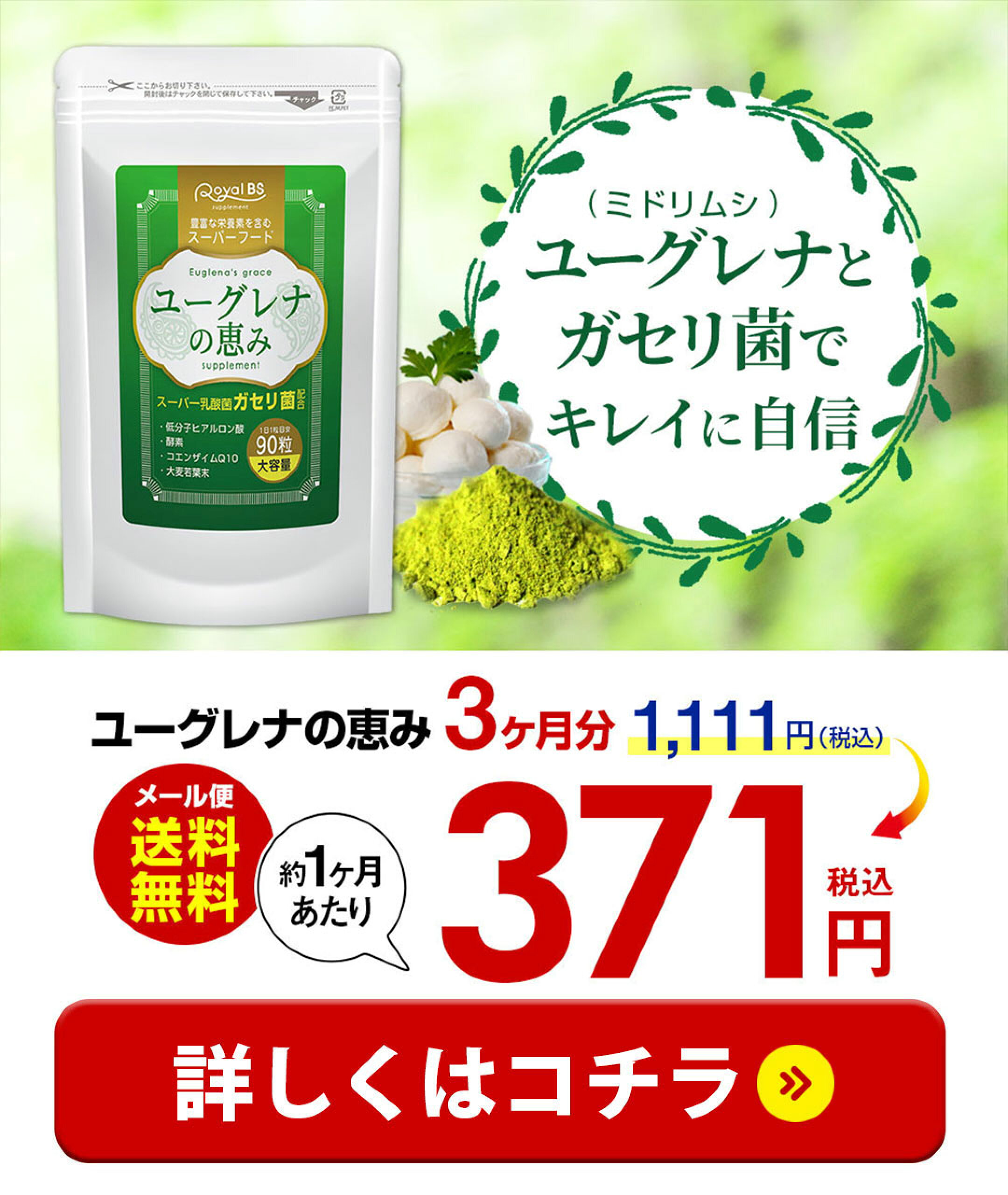 ユーグレナの恵み 90粒ユーグレナ ミドリムシ スーパーフード ガセリ菌 善玉菌 乳酸菌 腸活 菌活 酵素 サプリメント 大容量 お徳用 健康 美容 RoyalBS 日本製
