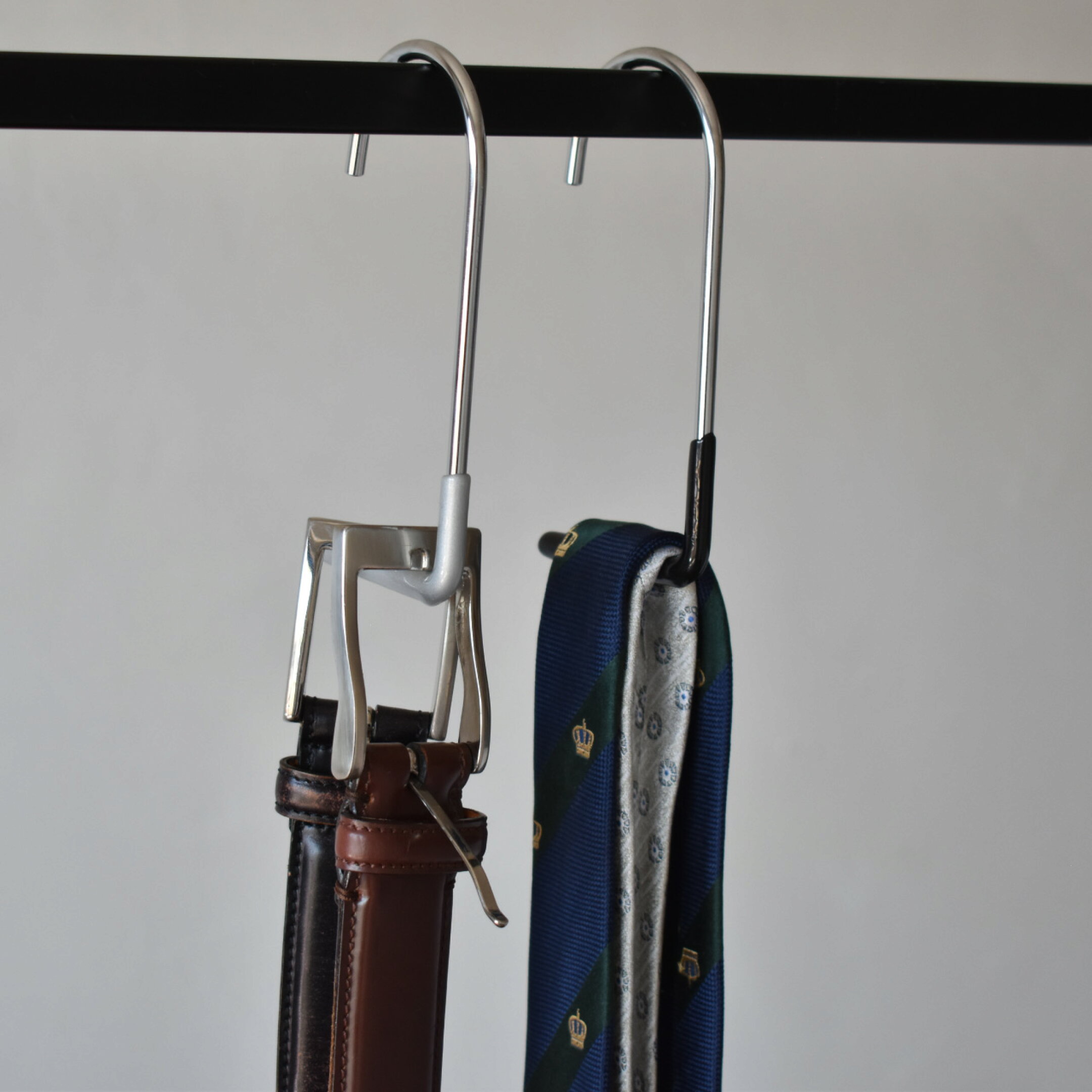 しまいにくい小物をすっきりとまとめられる、ベルト用とネクタイ用ハンガーをセットにしました。 ベルトやネクタイをプレゼントしようと考えている方、ハンガーもプラスワンで、より特別なギフトにしませんか?