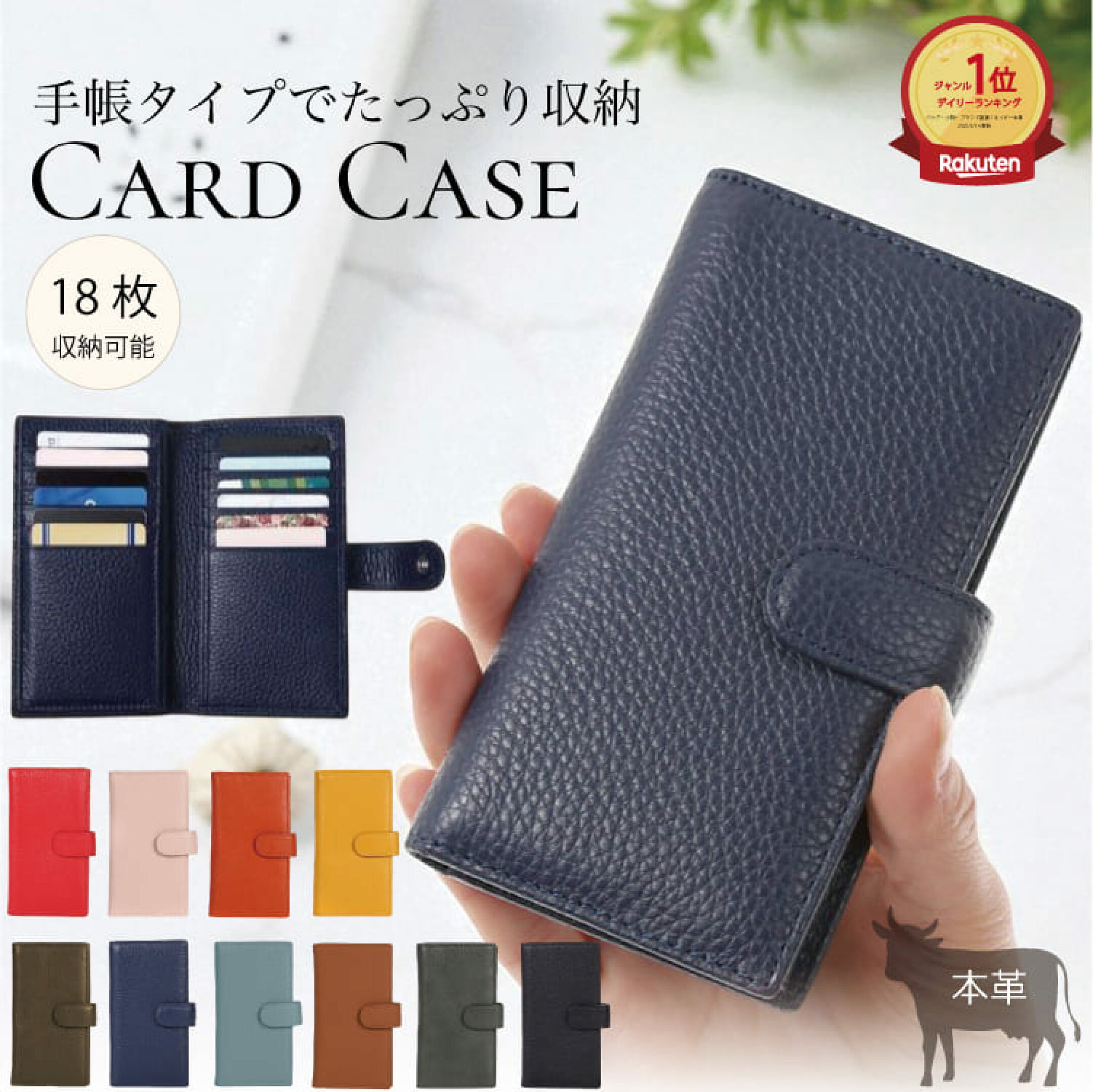 【クーポン配布中!】送料無料 楽天1位 厚み1.5cm 全10色 縦型 カードケース 薄型 手帳型 レザーカードケース メンズ レディース おしゃれ スリム ポイントカード クレジットカード 大容量 柔らかい 牛革 スナップボタン 収納 スリムカードケース #12062
