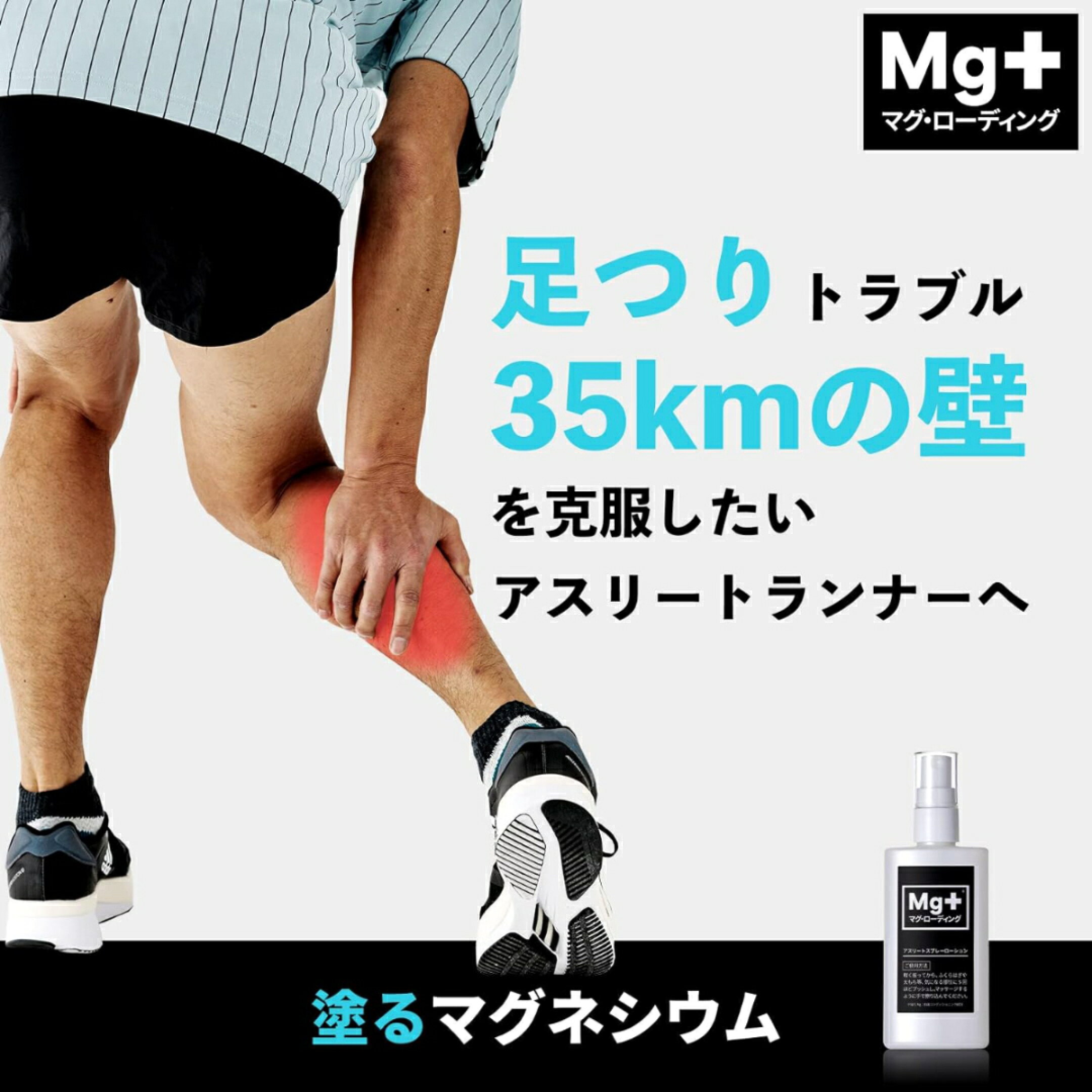 ふくらはぎや太ももに直接塗って足つり防止! 足つり予防 こむら返り防止 こむら返り予防 即効性 足をつった時の対処 レース前やハーフタイムに 水泳にも 高濃度&高浸透マグネシウム配合【マグ・ローディング】 足つり こむら返り 筋痙攣 アスリートスプレーローション100ml 塗るマグネシウム 経皮吸収 マラソン ランニング サッカー テニス 自転車 ロードバイク ゴルフ バレーボール バスケットボール 水泳 足がつる マグネシウムスプレー マグネシウムオイル