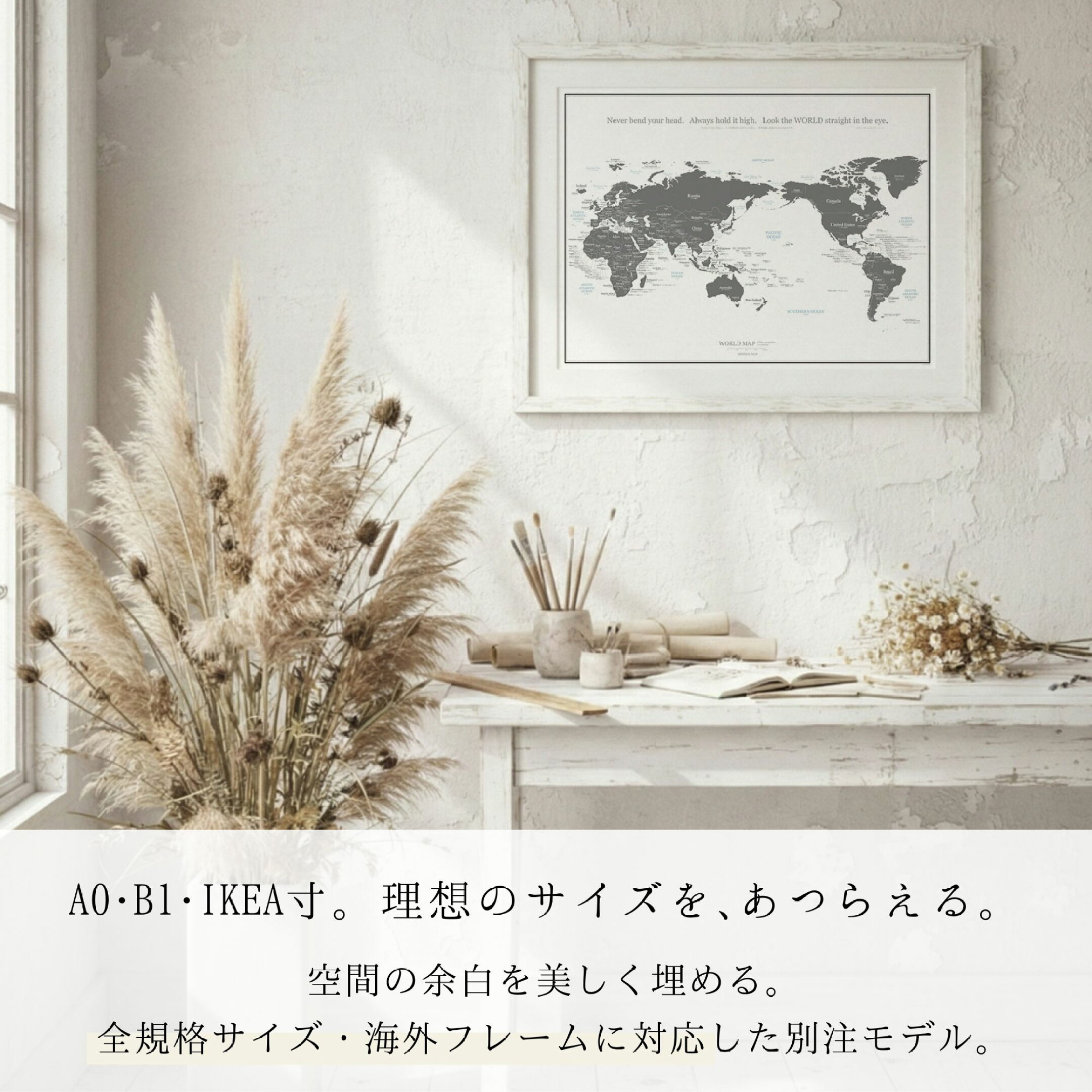 最大1500円OFF★【別注モデル】世界地図 ポスター オーダー A0 B1 IKEA|サイズ・加工 選べる|パネル・フレーム対応|MINIMAL MAP