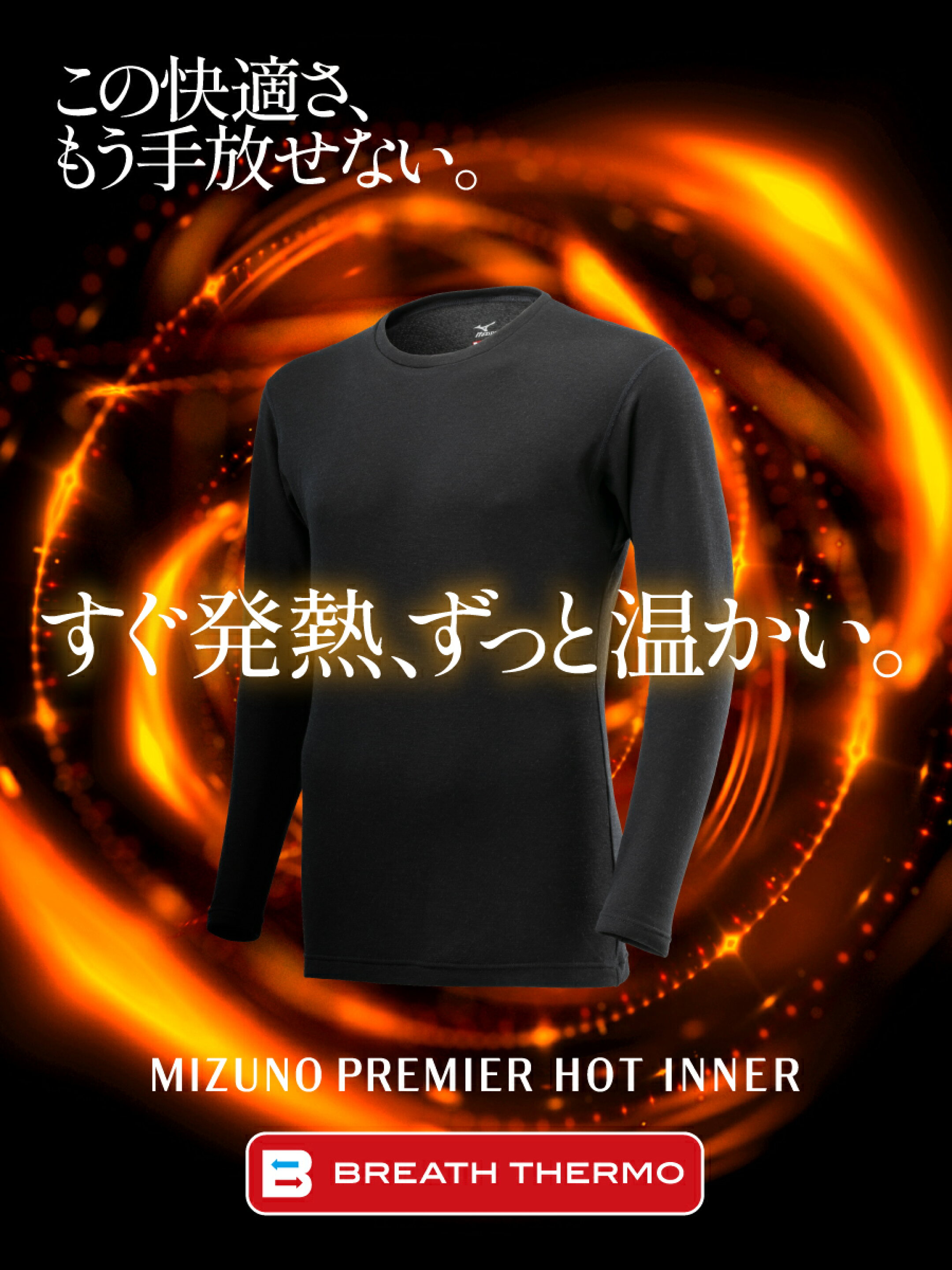 ミズノ公式【吸湿発熱】ミズノプレミアホットインナー ブレスサーモ Activeモデル 中厚 クルーネック長袖シャツ メンズ ブラック あったか インナー 下着 暖かい 寒さ対策