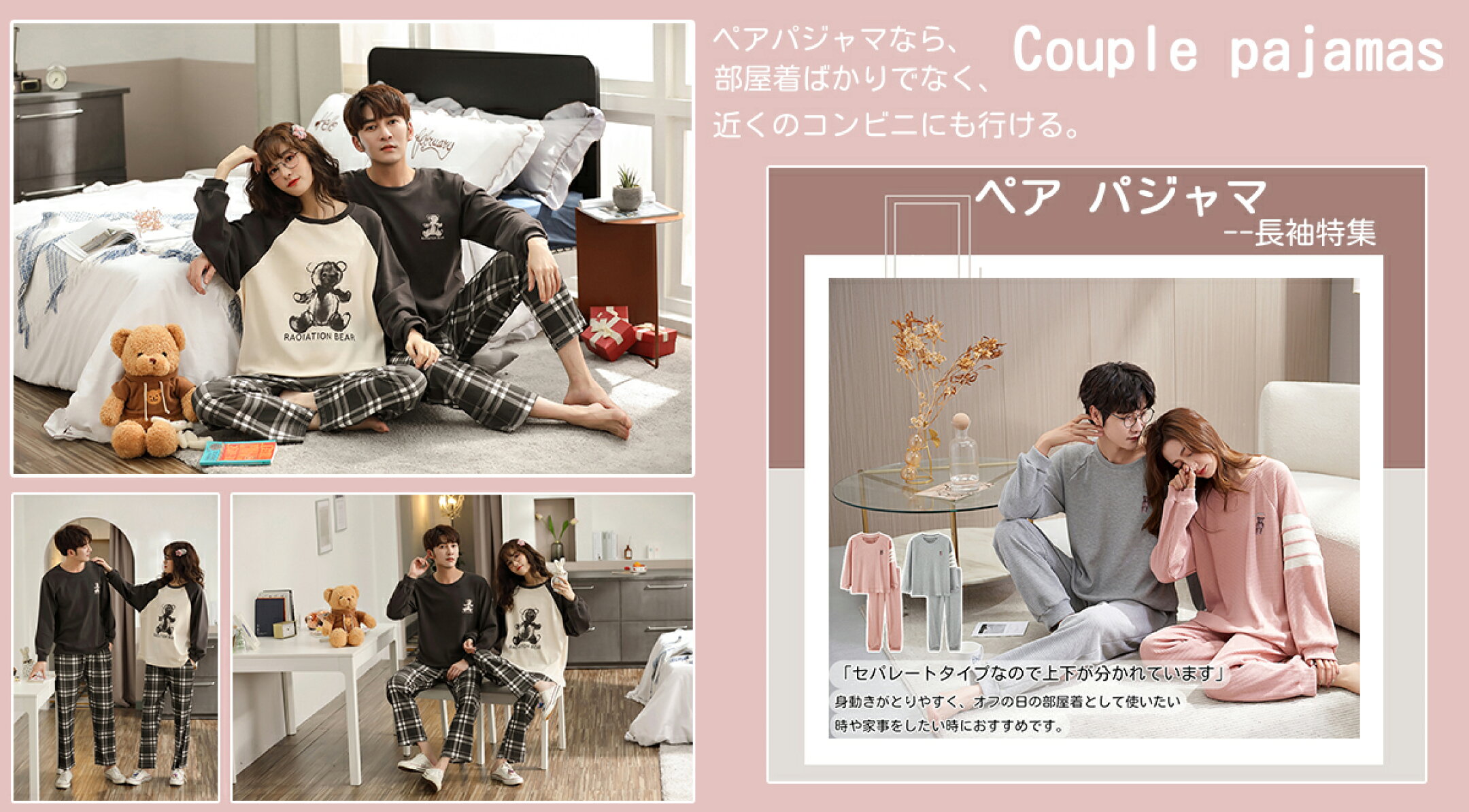 ペア パジャマ 長袖 春夏 カップル ペア ルームウェア 結婚祝い プレゼント カップル ペア パジャマ 冬 ギフト 上下 セット 部屋着 パジャマ ペア 長袖 ペアルック カップル おそろい プレゼント メンズ パジャマ 秋 記念日 プレゼント ペア カップル 前開き クマ ベージュ