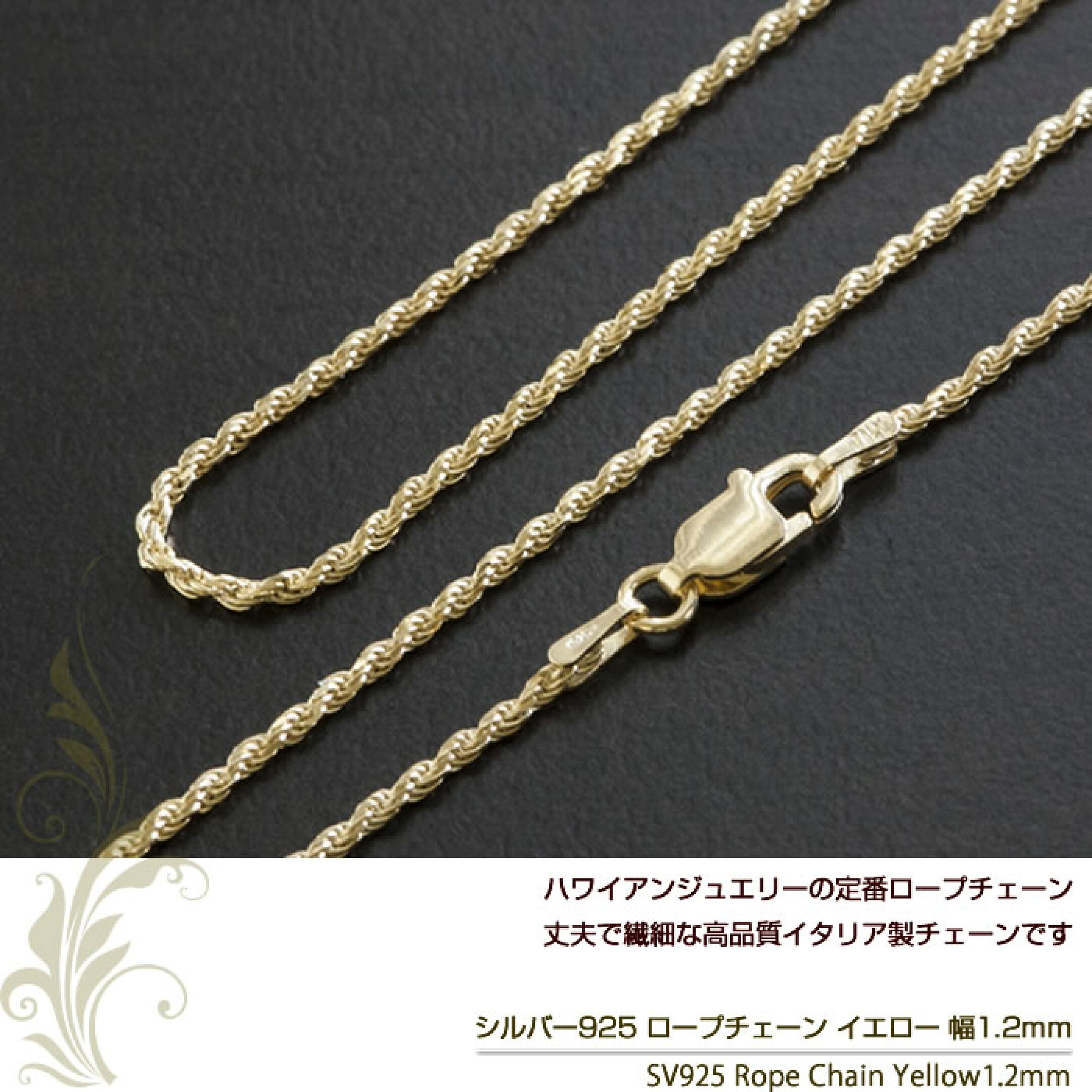 ハワイアンジュエリー ネックレスチェーン メンズ ネックレスチェーンのみ ロープチェーン フレンチカット シルバー925 シルバー 40cm 45cm 50cm 幅1.2mm イエロー イタリア製 レディース モアナ 誕生日 ギフト プレゼント 彼 彼女