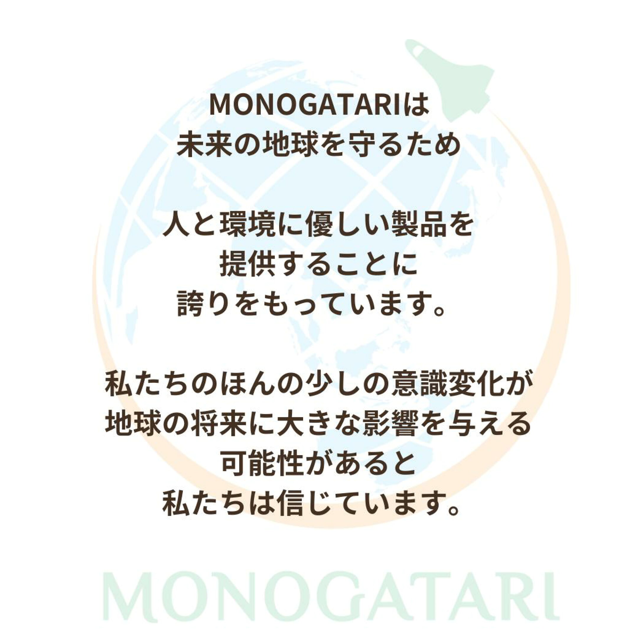 MONOGATARIの "ものがたり" ・作り手の思いが詰まったプロダクトと物語が使い手へ伝わり、 新たな物語が生まれる。 ・作り手にはなれなくても、 その想いを伝えることはできる。 ・作り手の想いをプロダクトにのせて、モノの価値を国を越えて多くの人に伝えることはできる。 わたしたちMONOGATARIは、「作り手と使い手が繋がり、 プロダクトに込められた想いが使い手へと引き継がれ、 新しい物語が始まる」、この橋渡し役になりたいと思っています。 モノの価値を計るモノサシとして、機能性や利便性ももちろん大事な要素になりますが、 素材そのものにも目を向けてほしいと思っています。 わたしたちが紹介する 「商品(MONO=モノ)」を通じて、 使い手となる皆さま一人一人が「モノの素材」に関心を抱き、 我々の商品のこだわりである 【エコロジーとは】【サスティナブルとは】 について考えるきっかけになれば嬉しいです。