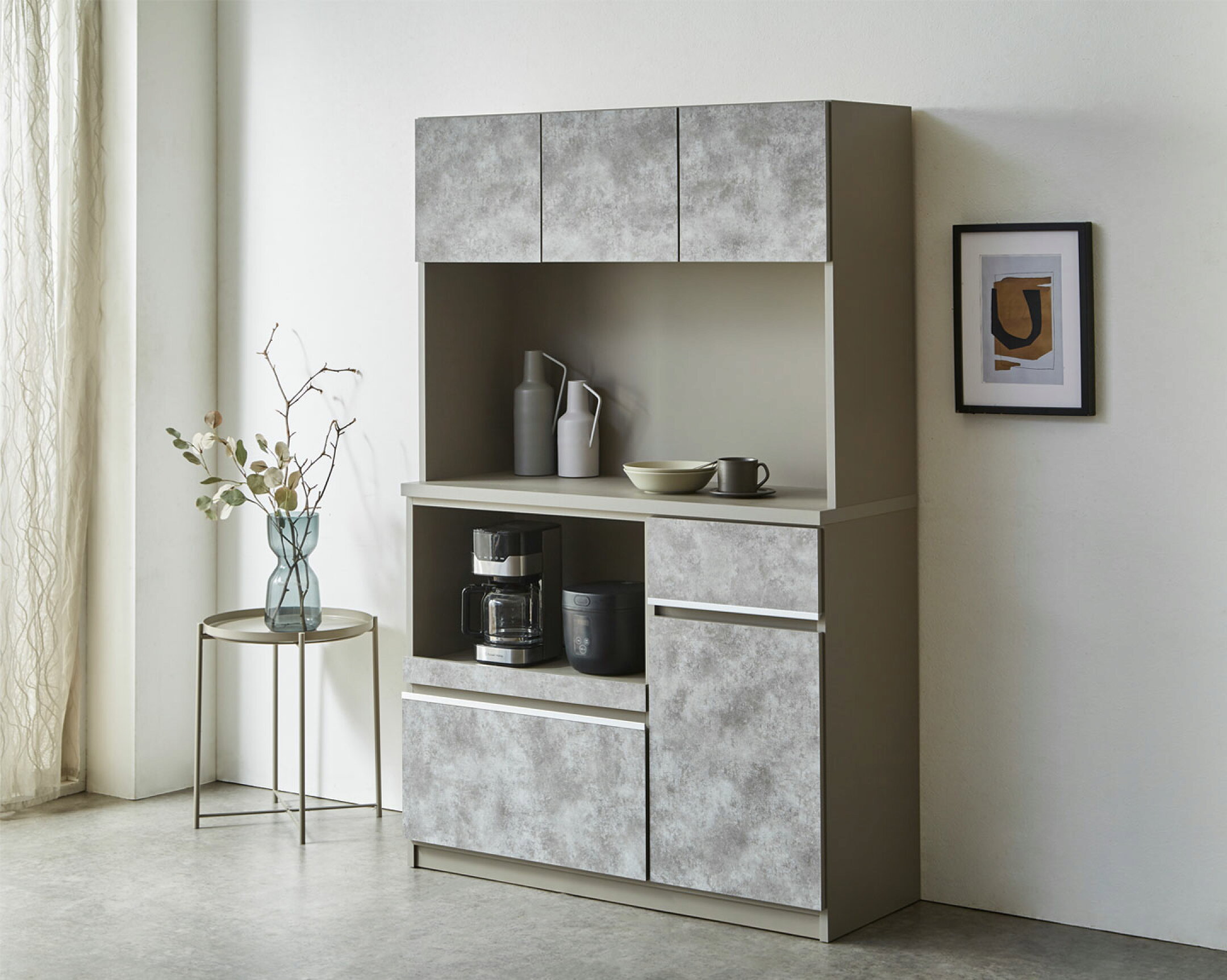 おしゃれ食器棚 レンジラック レンジ台 幅140 国産 大理石調 ストーン柄 黒 白 モダン レンジボード 家電収納 作業台 背面化粧仕上げ グレージュ 140cm幅 ROOM投稿キャンペーン食器棚ロータイプ キッチンカウンター 収納 完成品 140 間仕切り レンジ台 アンサンブル 幅139.1cm 大理石調 ストーン柄 くすみ グレー アースカラー ブラック ホワイト 日本製 一人暮らし 背面化粧仕上げ おしゃれ 大川家具