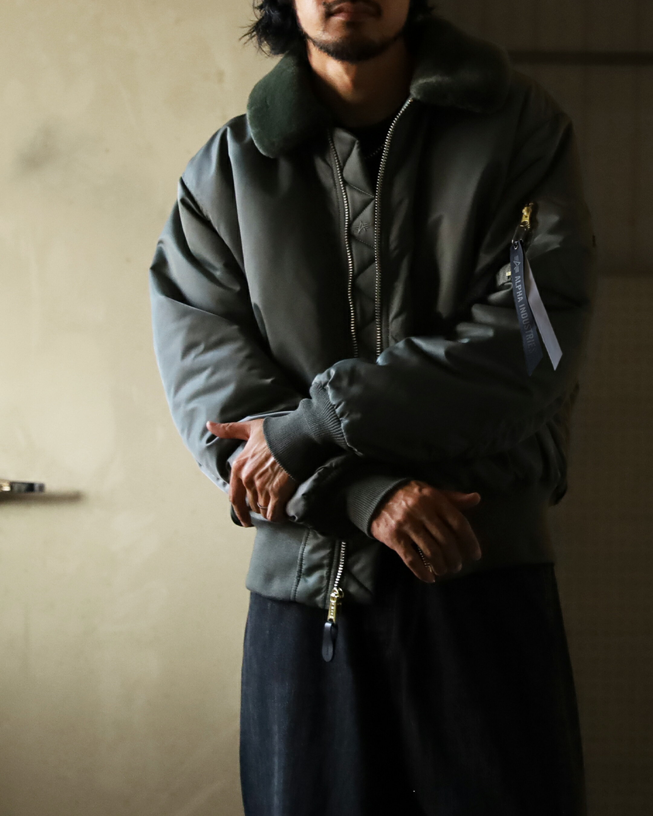 オキシジェンタブ、ペン差しなど現代では不要なディテールを思い切って削ぎ落し、数あるフライトジャケットの中でも極限までシンプルに仕上げた別注モデル。 B-15という伝統を活かしながら、現代の感覚に調和する一着に。 ALPHA INDUSTRIESの確かな技術とともに、その思想をいまに伝える特別仕様です。