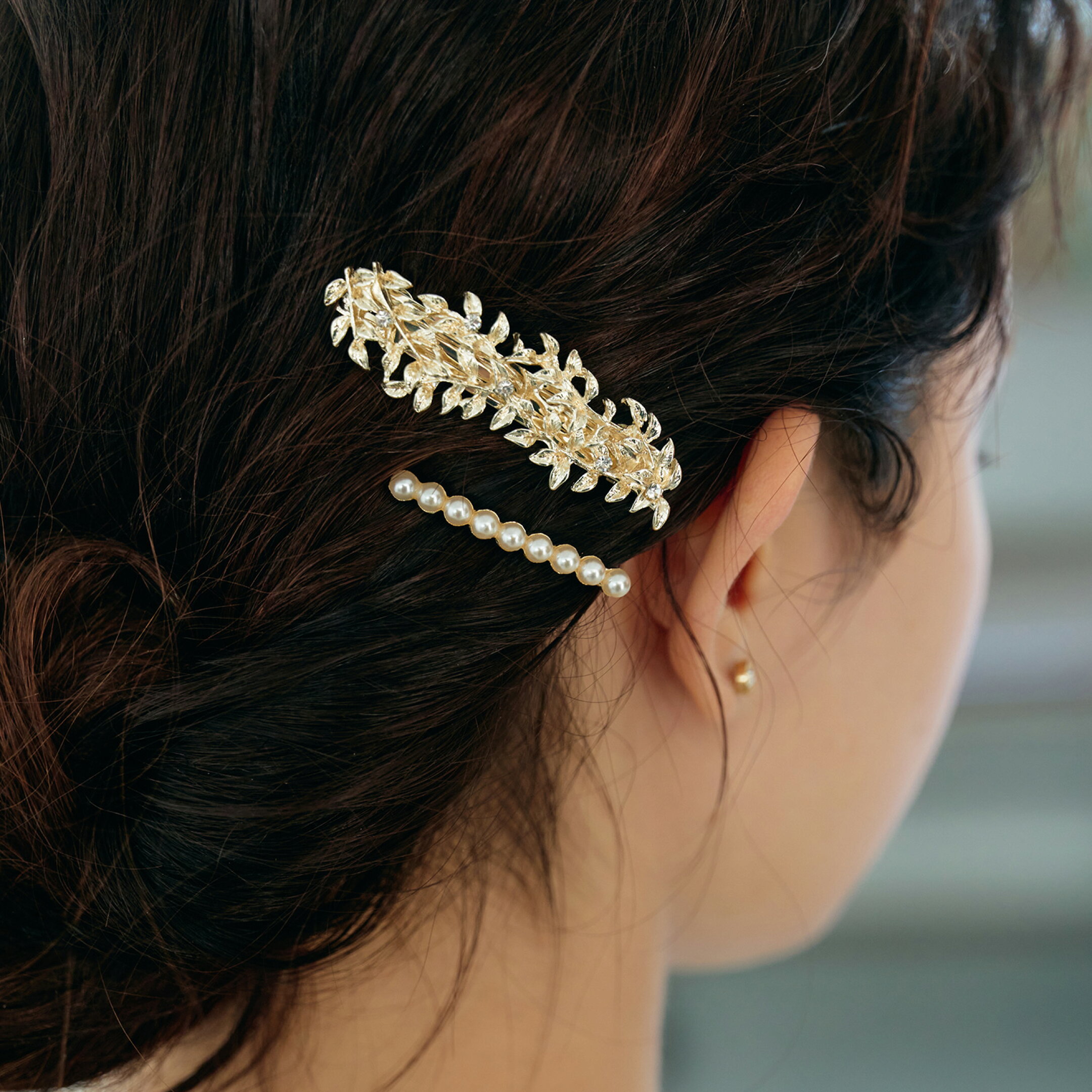 ヘアスタイルにアクセントをプラスするだけで、全体の印象を格上げしてくれる絶対外せないアイテム。 定番のUピンやバレッタはもちろん、ヘアビジューをランダムにつけるのも今っぽい雰囲気に。 また、ヘッドドレスやコームをまとめ髪にさっと差し込むだけで、後ろ姿までエレガントに仕上がります。