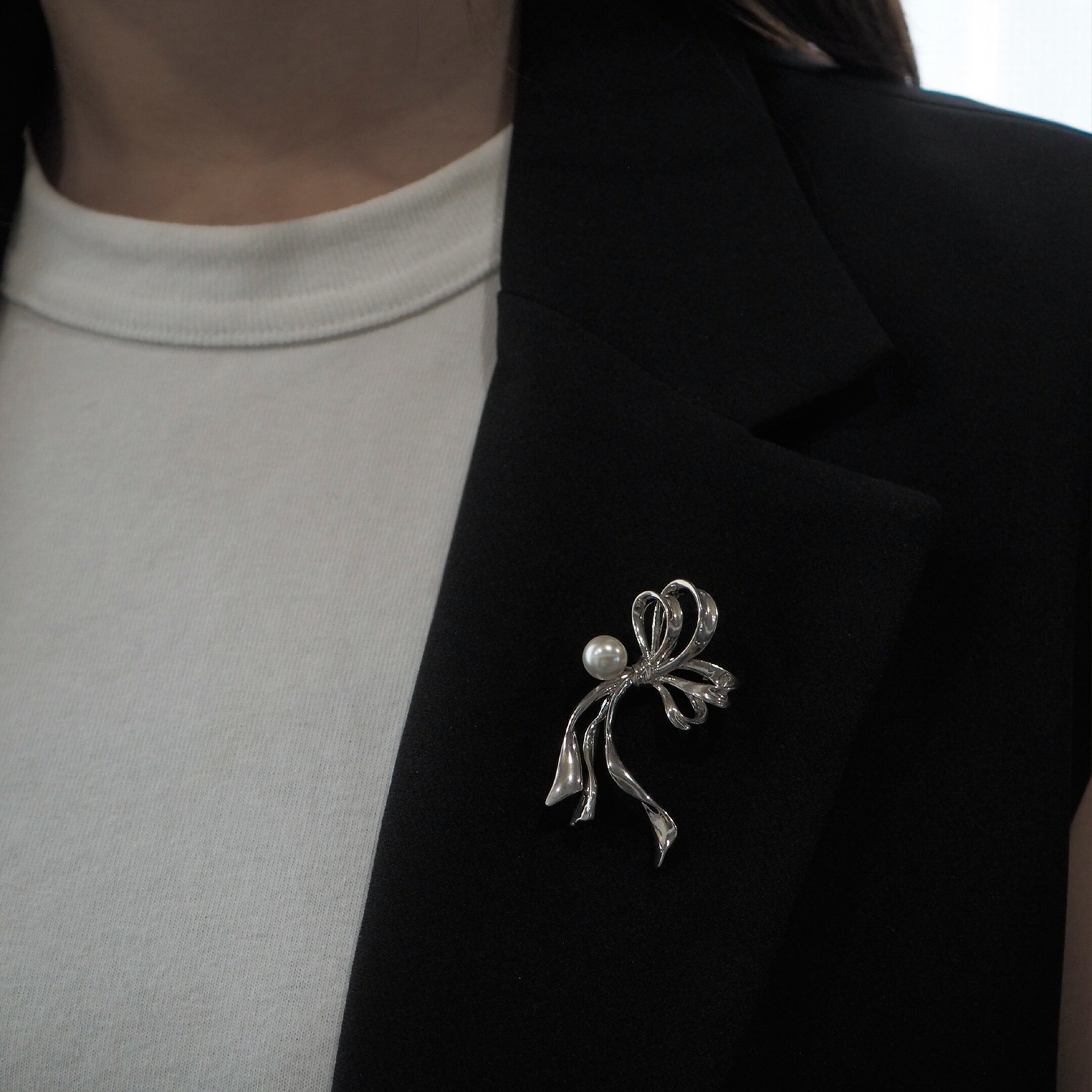 ブローチ コサージュ メタル リボン Ribbon りぼん パール ホワイト 白 ゴールド シルバー シンプル リボンノットパールブローチ クリスマスプレゼント