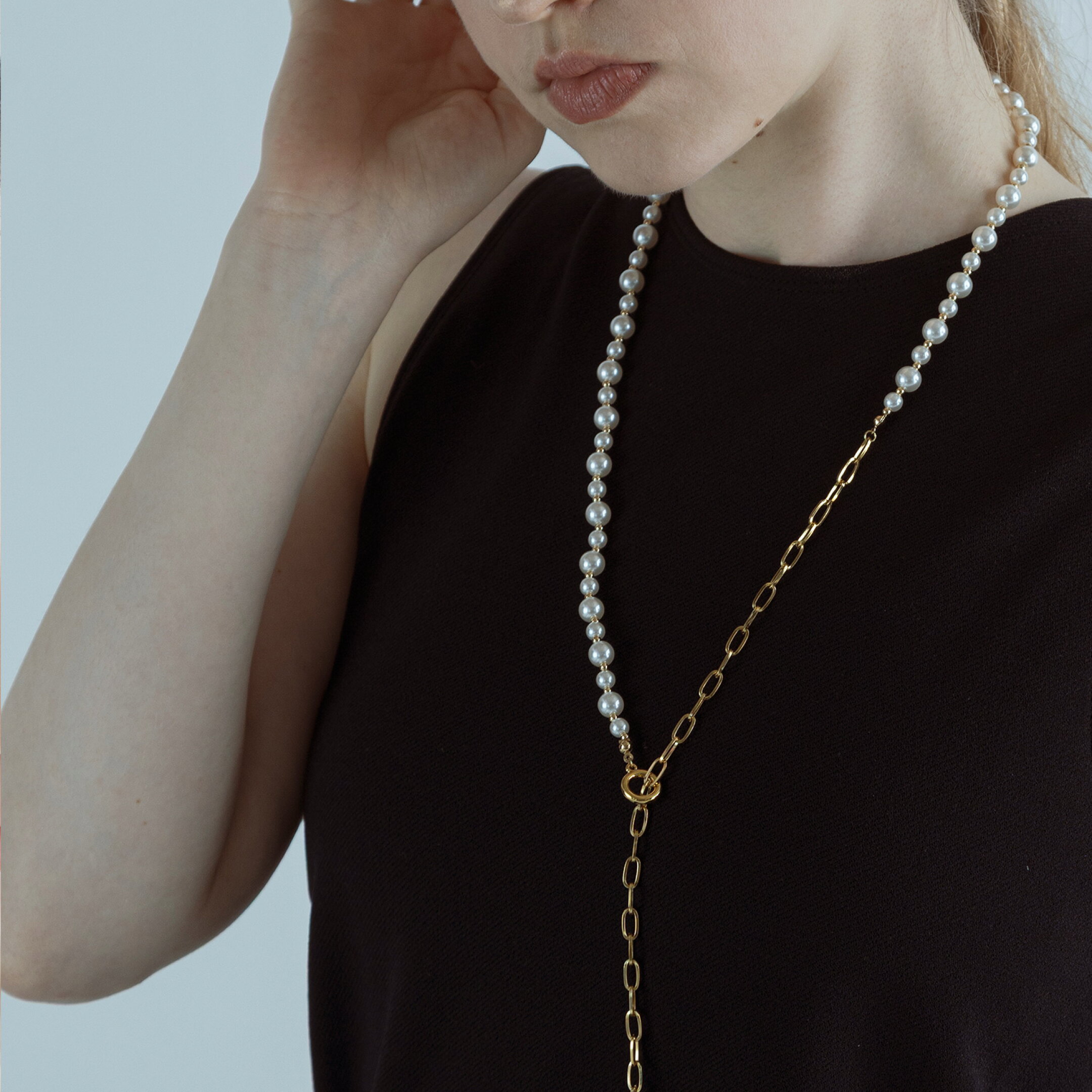 ネックレス ロングネックレス Y字 ラリエット パール チェーン 長め シンプル メタル ゴールド シルバー 日本製 made in Japan パール×メタルボールロングネックレス【MUK voyalibre】 クリスマスプレゼント