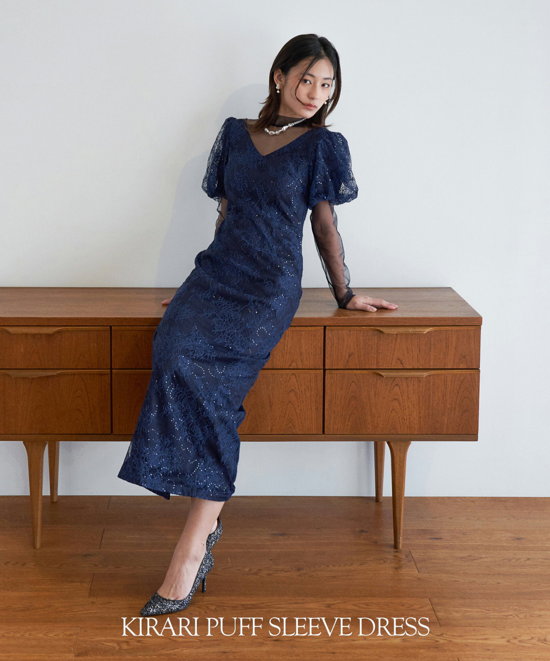 【予約商品】kirari puff sleeve dress パーティー ドレス ワンピース レース ハイネック ロング丈 お呼ばれスタイル ボリューム袖 成人式 同窓会 謝恩会