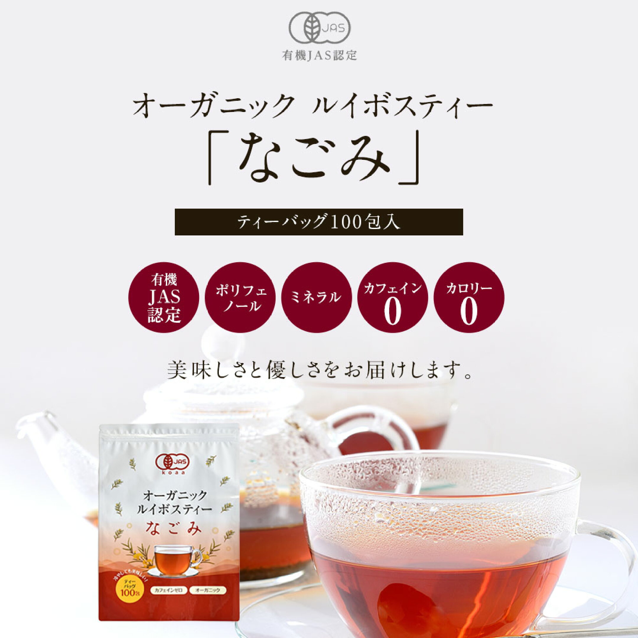 オーガニック・ルイボスティー なごみ ティーバッグ 100包 【送料無料】 ルイボスティー オーガニック 有機JAS メガ盛り ノンカフェイン 妊活 お茶 ハーブティー ルイボス 紅茶 温活 マタニティ 100個入りランキング ギフト s1