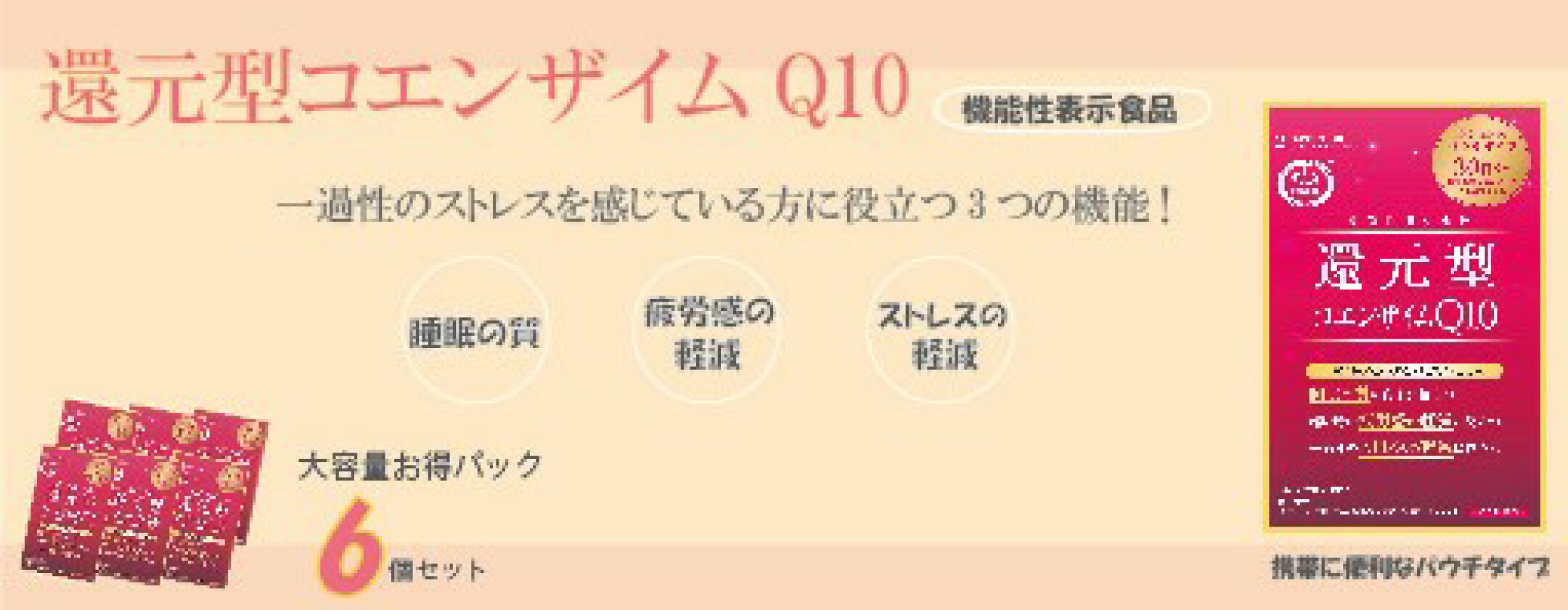 還元型コエンザイムQ10 機能性表示食品 60粒 6個セット 約180日分 袋タイプ カネカ社製 ソフトカプセル 代引不可