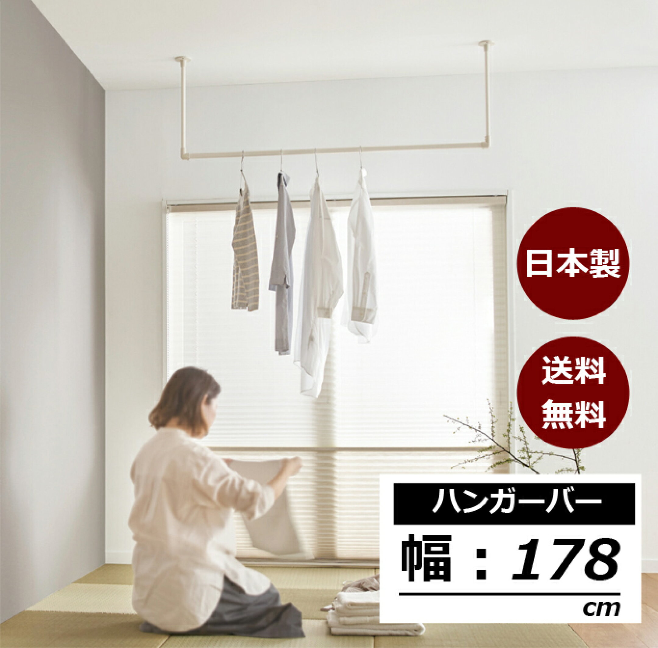 ハンガーパイプ 幅178cm 日本製 天吊り 壁付け