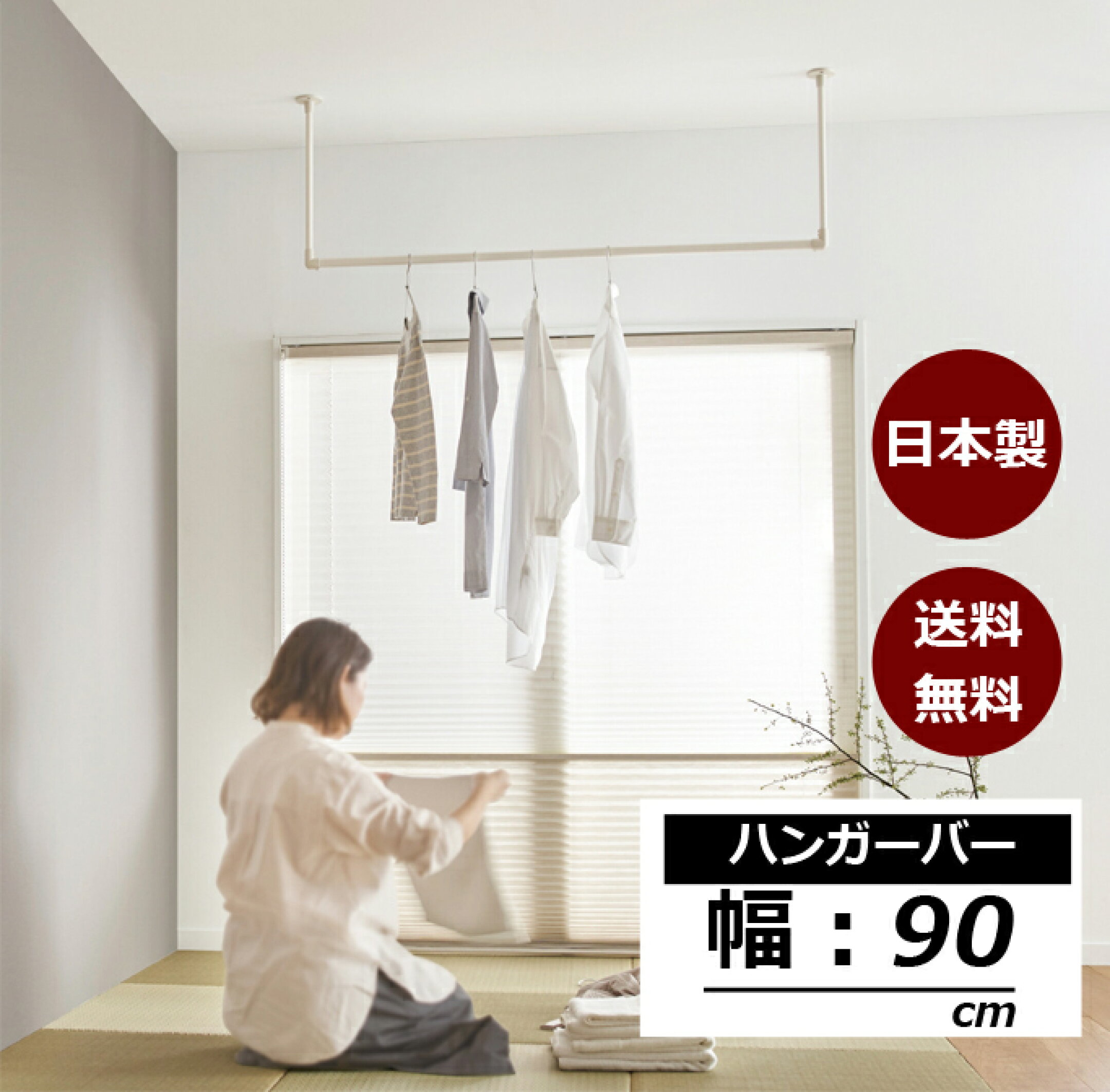 ハンガーパイプ 幅90cm 日本製 天吊り 壁付け