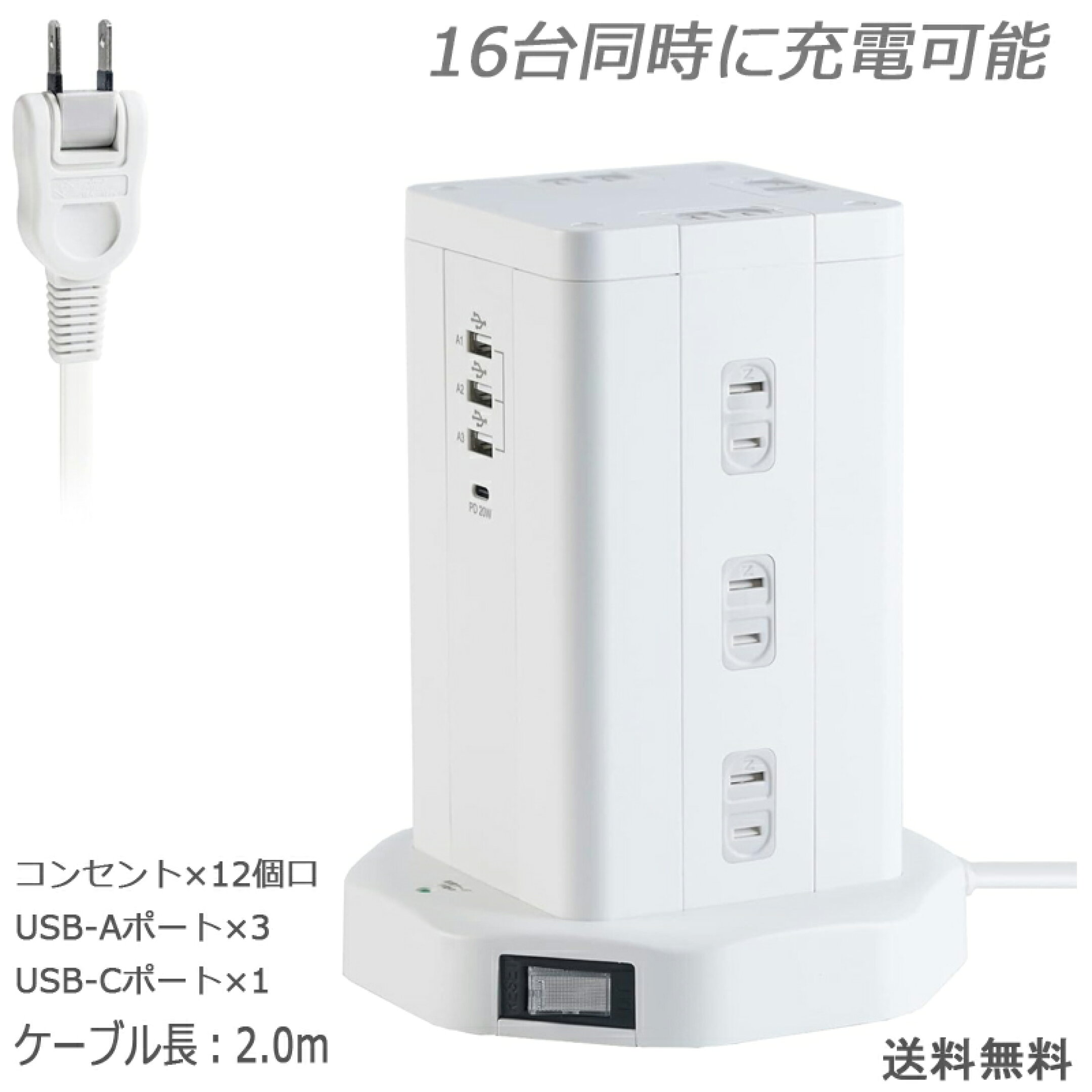 タワー式電源タップ 12AC充電口(110-125V)