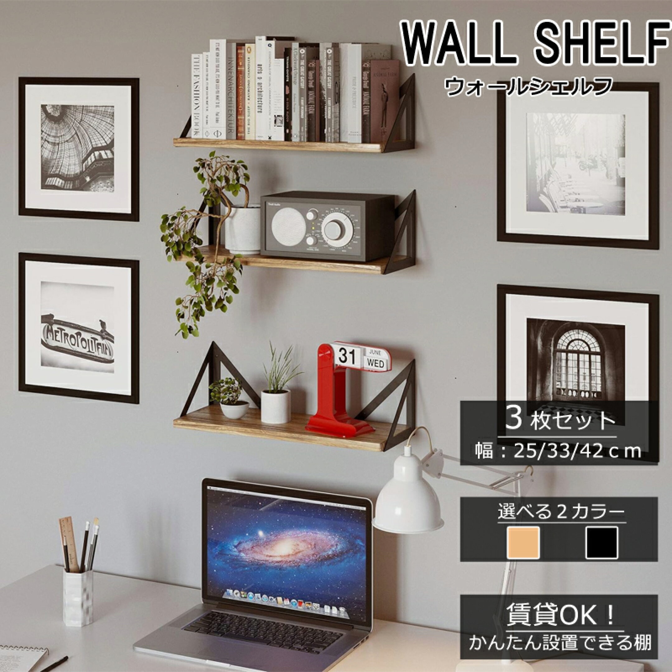 ウォールシェルフ 賃貸 3枚セット