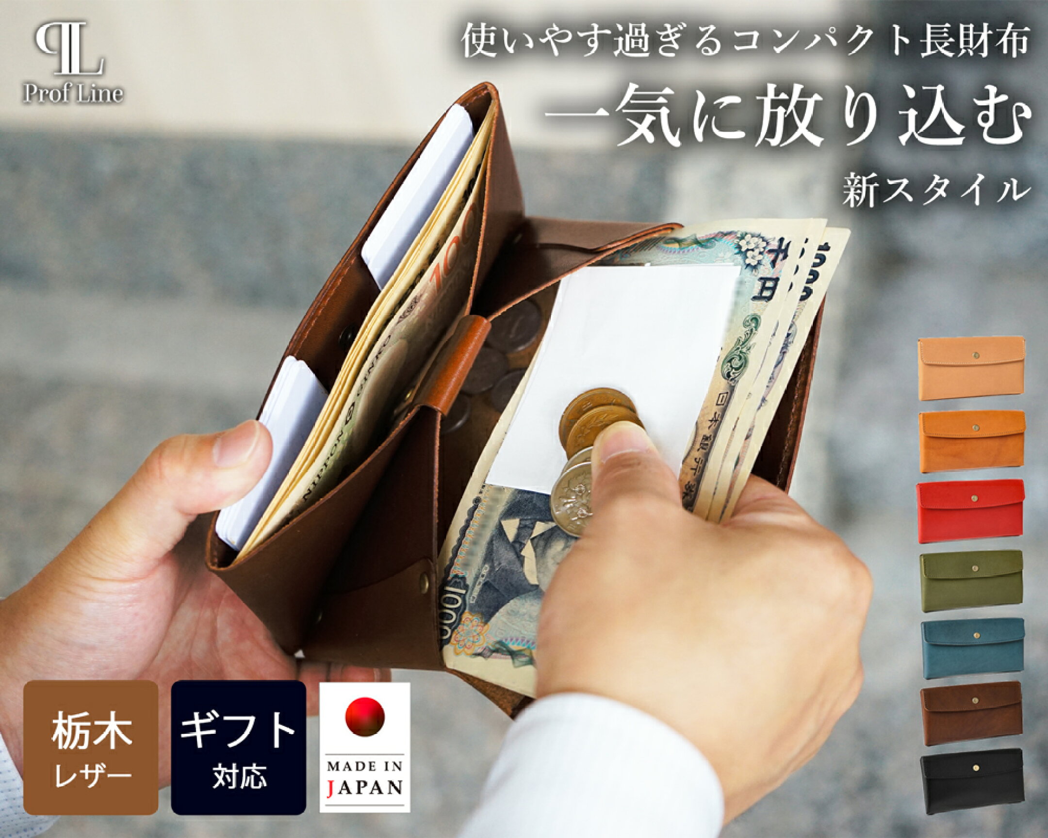 長財布 一万円札サイズ 栃木レザー 使いやすい 日本製 ProfLine レディース メンズ ブランド 財布 ぴったり コンパクト 薄い 小さい かわいい 薄型 おしゃれ スリム 小さめ 革 黒 グリーン 大容量 レザー かぶせ 軽い ながさいふ 緑 ミニ 小銭入れ 大きく開くヌメ革 短い
