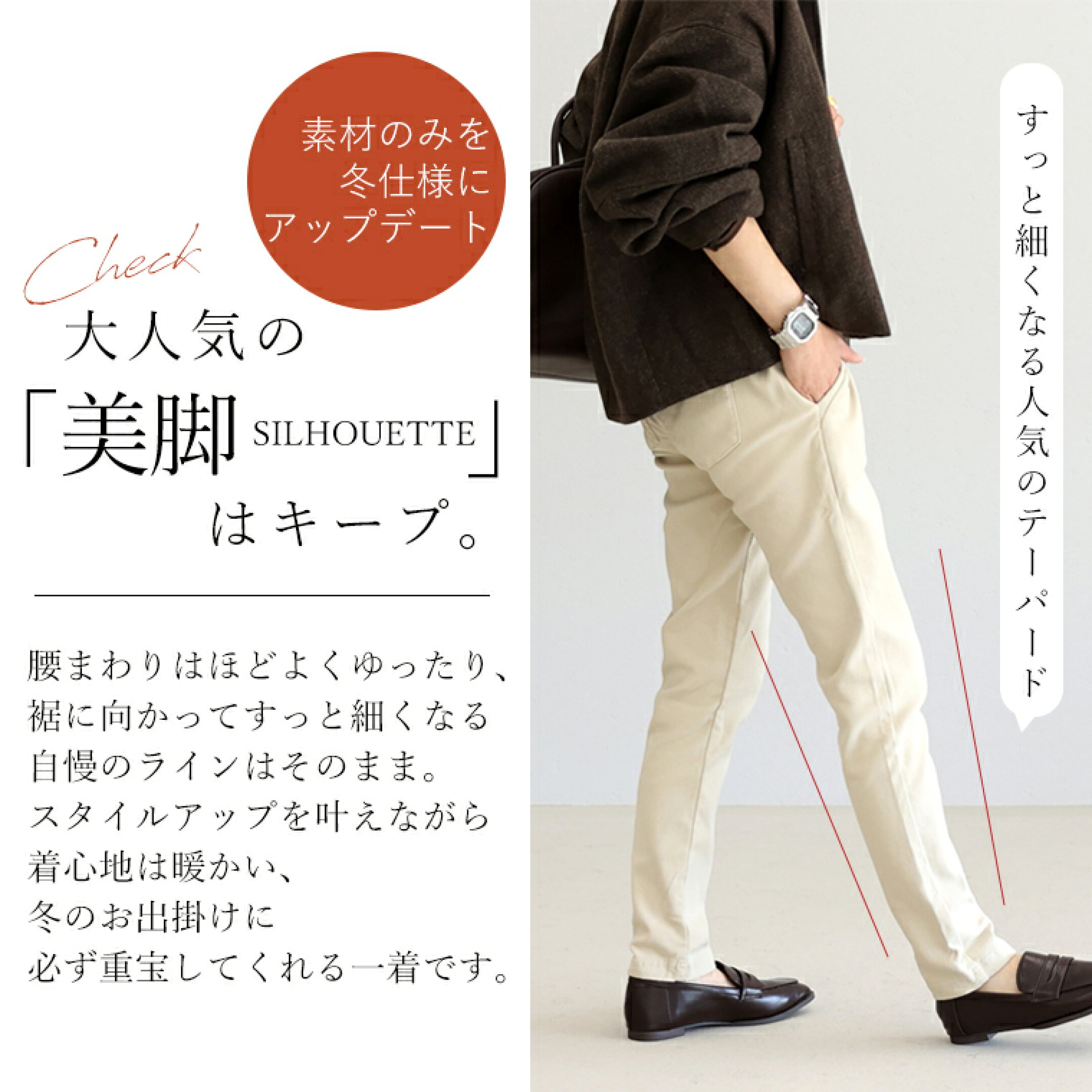 欲しいボトムスがきっと見つかる! 裏起毛ボトムスを選定。 今年の冬は冷え知らず! 日常使いにも、お出かけにも活躍する ほっこり暖かくて、動きやすい 快適な穿き心地のボトムです。