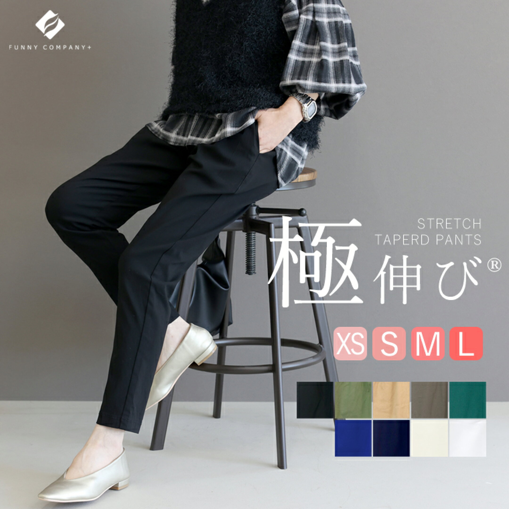 極伸びストレッチテーパードパンツ 【メール便可/ma3】ストレッチパンツ レディース ストレッチ パンツ 大人カジュアル テーパードパンツ 30代 40代 50代 楽ちん ウエストゴム