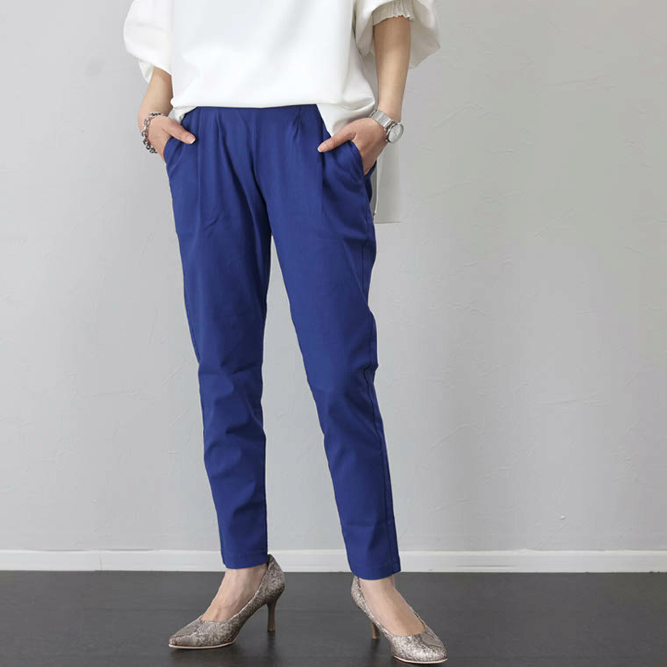 「イロチで揃えたくなる!」豊富なカラーバリエーションとサイズ展開にも注目したいテーパードパンツ。 腰まわりはゆったり、足首に向かいすっと細くなる美脚シルエット。カジュアルにもきれいめにも活躍する万能パンツです。